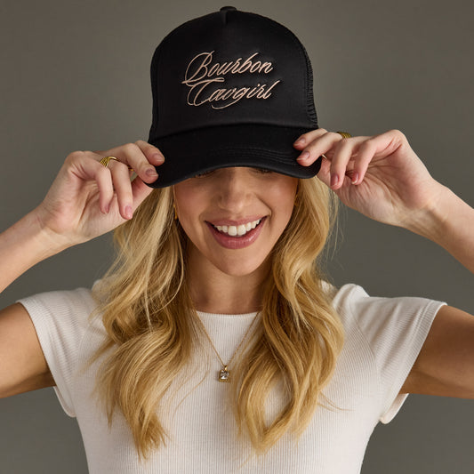 Bourbon Cowgirl Embroidered Foam Trucker Hat - Black