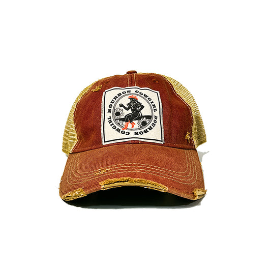 Bourbon Cowgirl Distressed Red Snap Back Trucker Hat