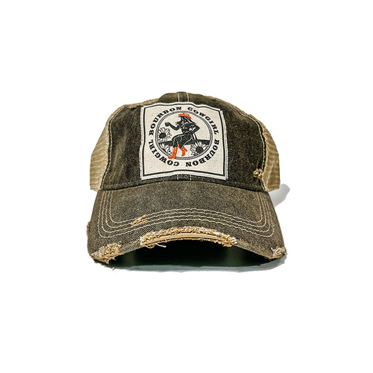Bourbon Cowgirl Distressed Black Snap Back Trucker Hat
