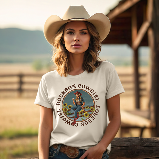 Bourbon Cowgirl Logo Natural Tee Shirt - Bourbon Cowgirl