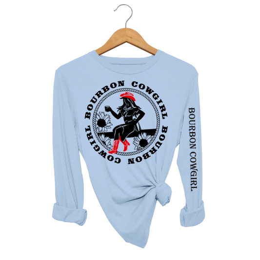 Bourbon Cowgirl Long Sleeve Blue T-Shirt Bourbon Cowgirl
