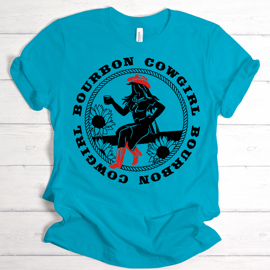 Bourbon Cowgirl Logo Turquoise Tshirt - Bourbon Cowgirl