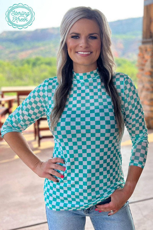Dolphin Darlings Mesh Top Turquoise Checkered