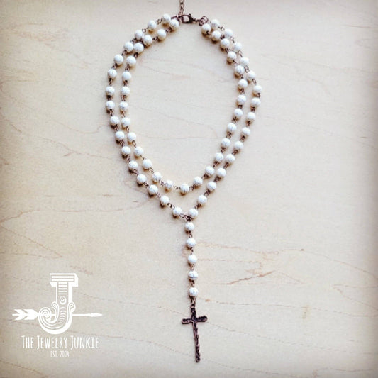 Double Strand Lariat White Turquoise Necklace wit Cross Charm