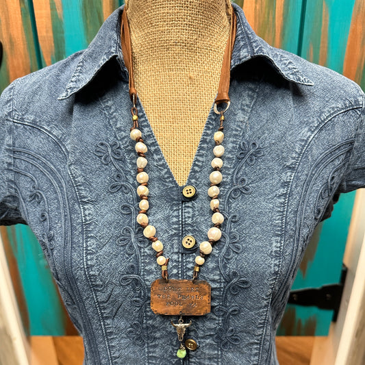 Don't Let the Pearls Fool Ya Handmade Necklace for Bourbon Cowgirl