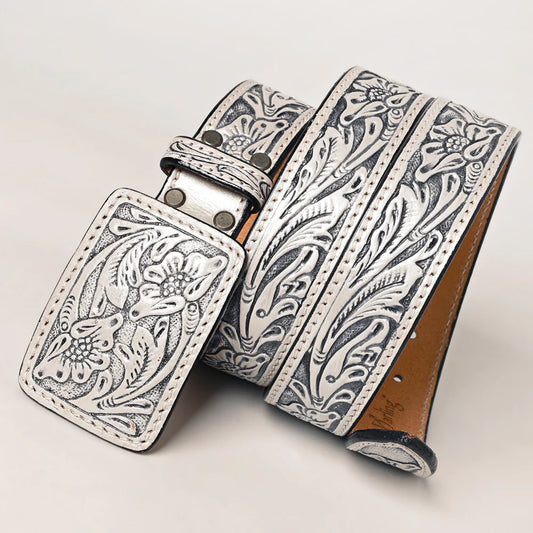 Gray Tooled Leather Belt- Western Belts for Cowgirls