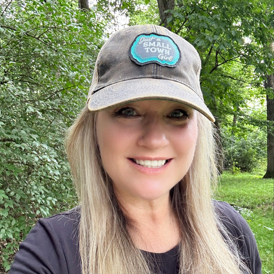 Just A Small Town Girl Distressed Trucker Cap, Black
