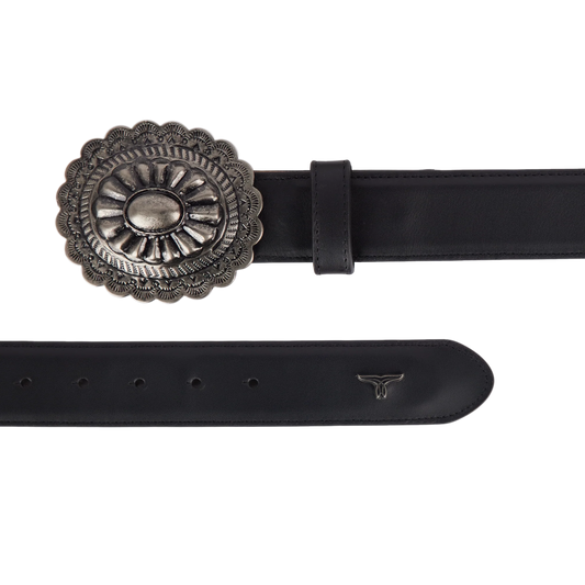 Lane Black Woven Laced 1.5" Leather Belt with Round Buckle