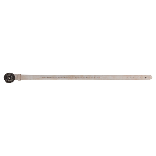 Lane White Woven Laced 1.5" Leather Belt with Round Buckle Ceramic Crackle