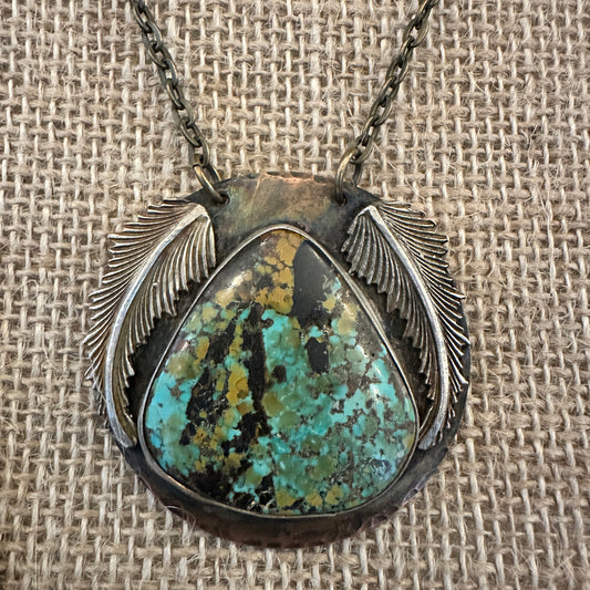 Large Turquoise and Feathers Handmade Necklace for Bourbon Cowgirl