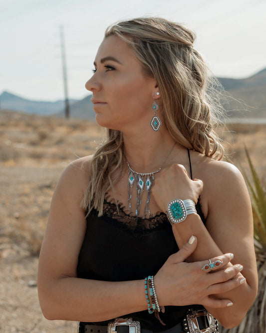 15-Inch Flat Blue Turquoise & Sterling Silver Pearl Choker