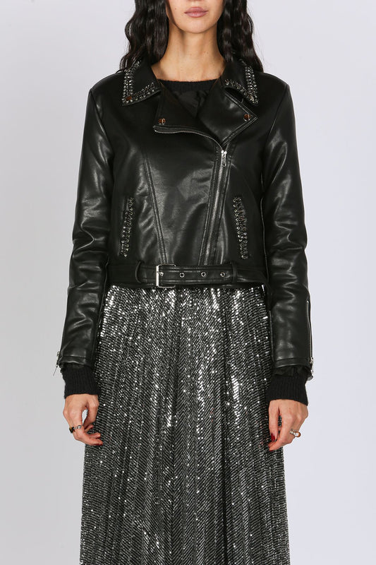 Black Short Fringe Leather Skirt at Bourbon Cowgirl
