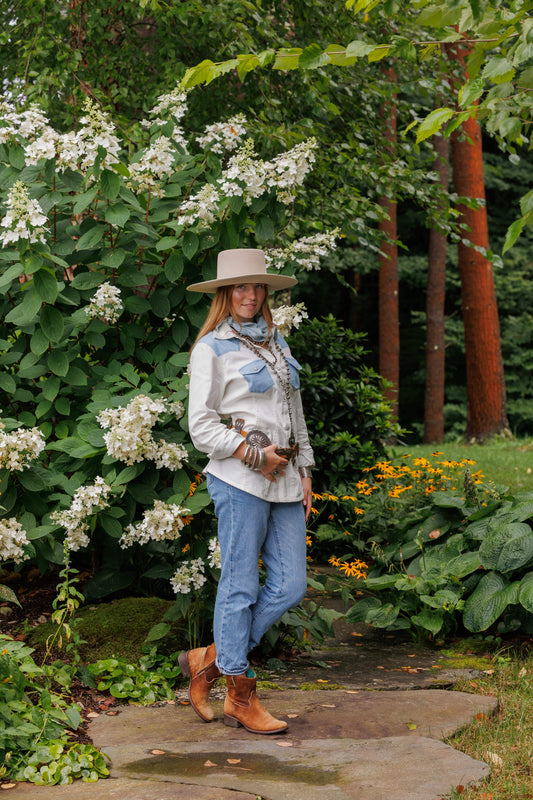 Denim Blue Leather Jacket at Bourbon Cowgirl