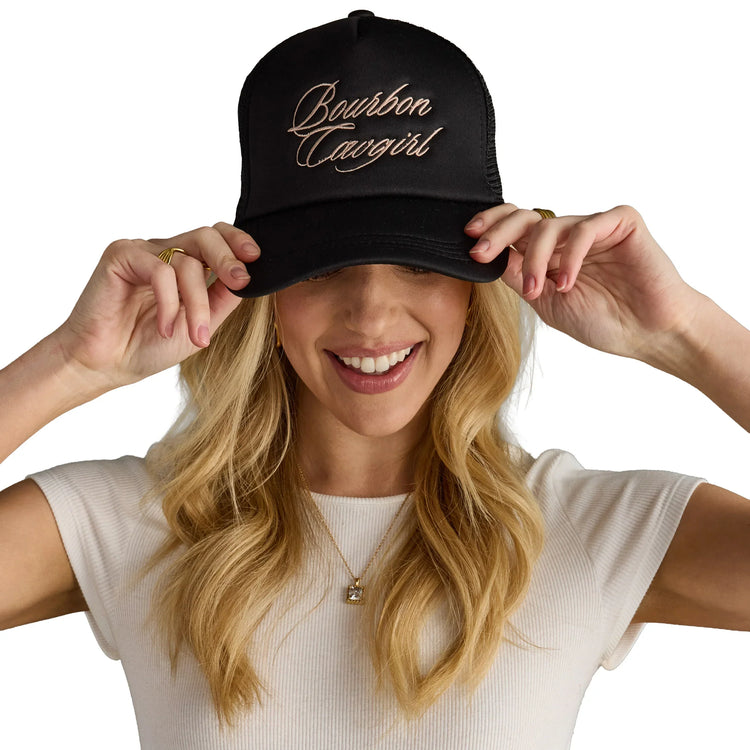 Bourbon Cowgirl Embroidered Foam Trucker Hat - Black