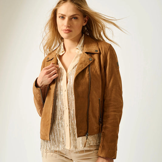 Misty Nubuck Leather Jacket by Mauritius in Cognac