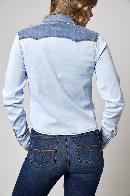 Annie Cropped Snap Shirt by Kimes Ranch in Denim