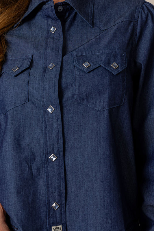 Rayna Snap Front Top by Kimes Ranch in Denim