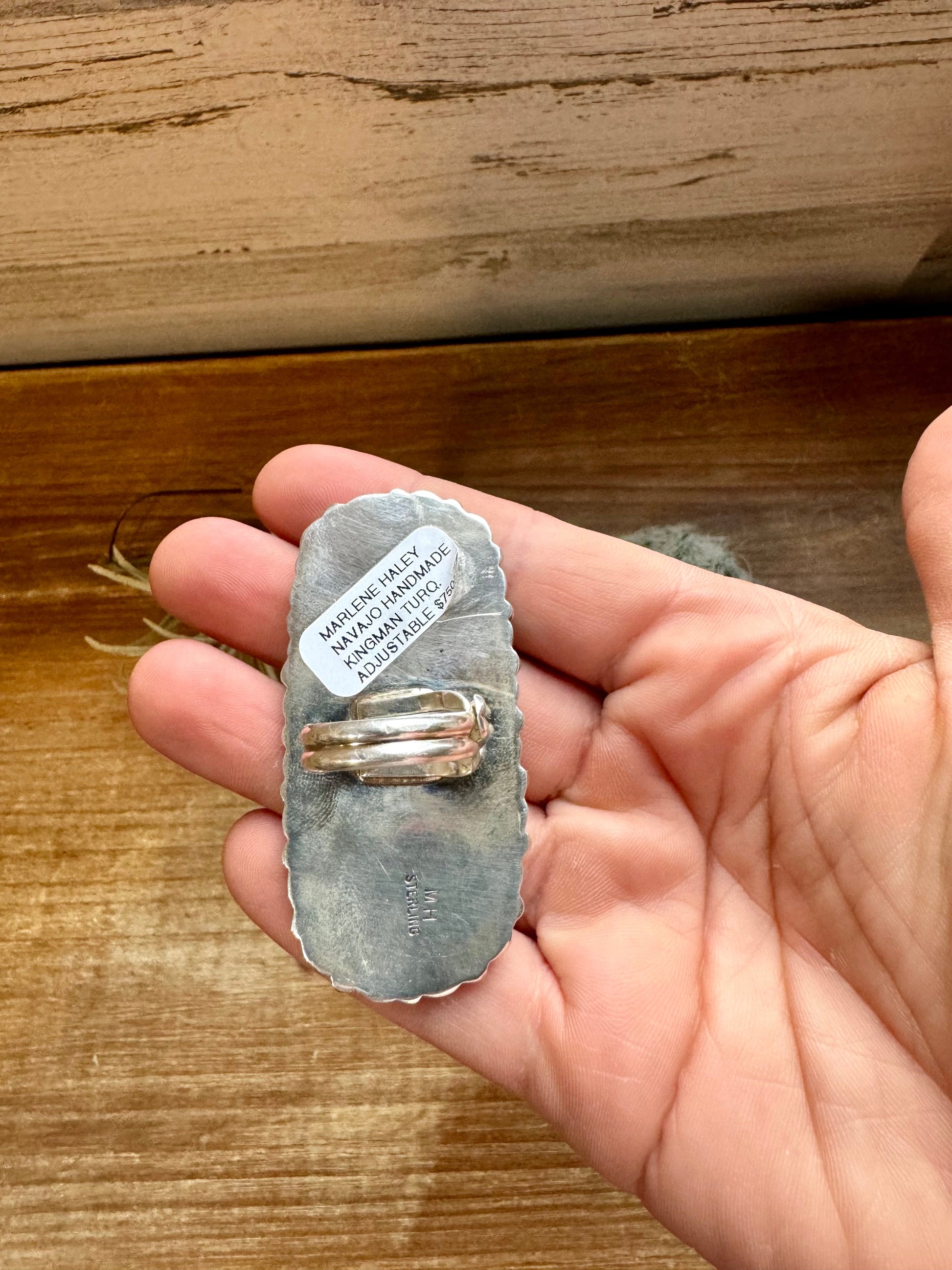 Big Ring - adjustable kingman turquoise ring and sterling silver