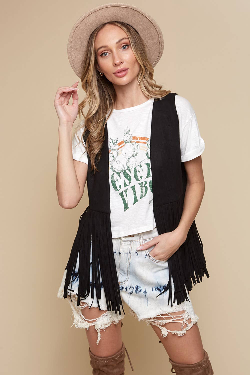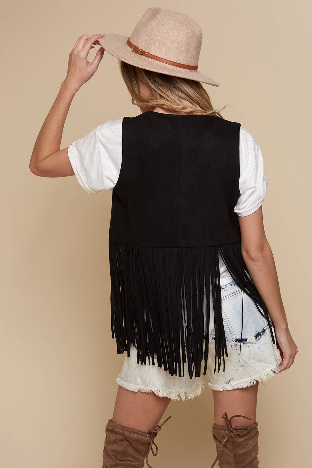 Black Western Faux Suede Fringe Vest for Cowgirls. This beautiful and quality faux suede vest is a perfect layering accessory for your cowgirl outfits.