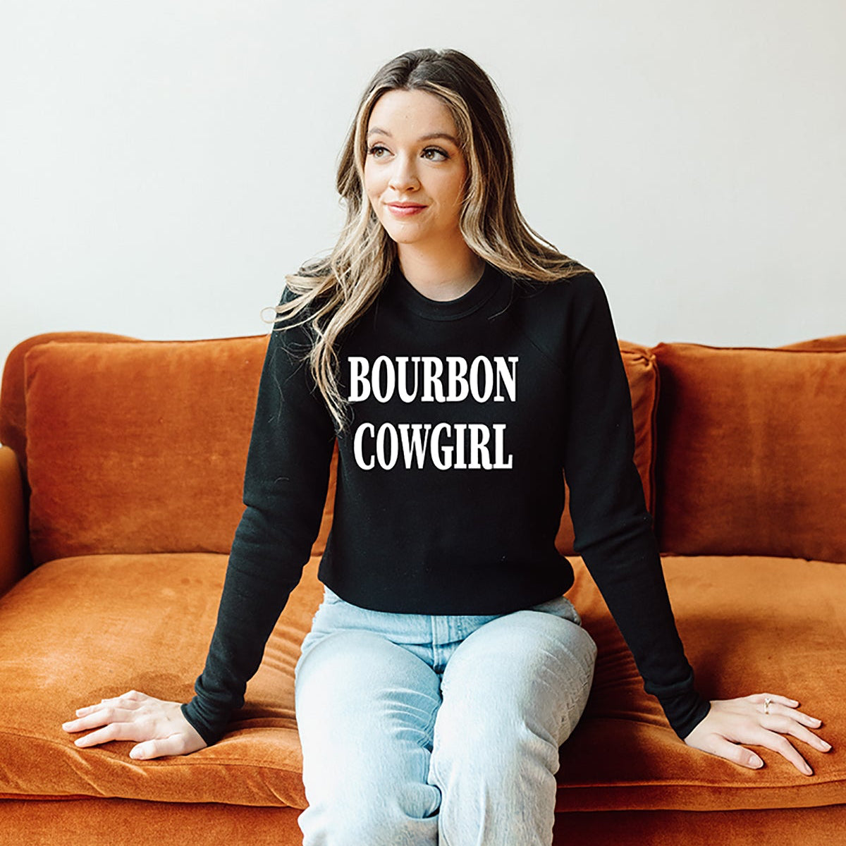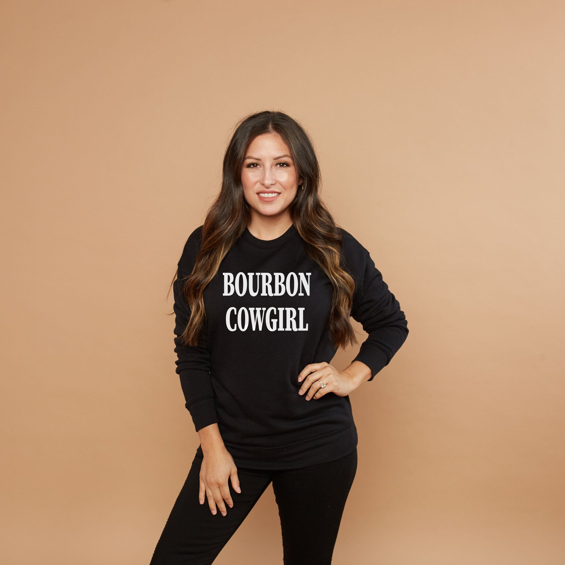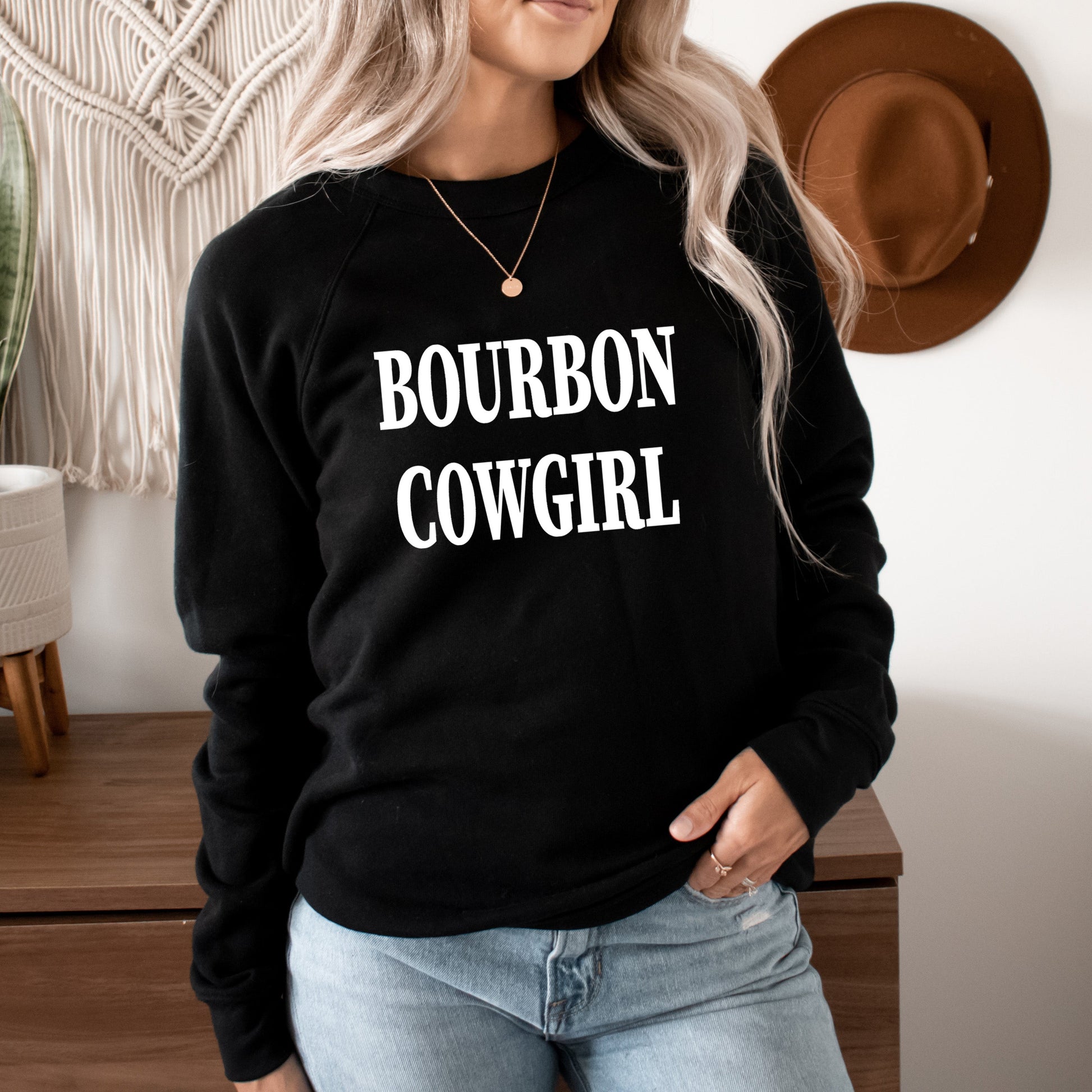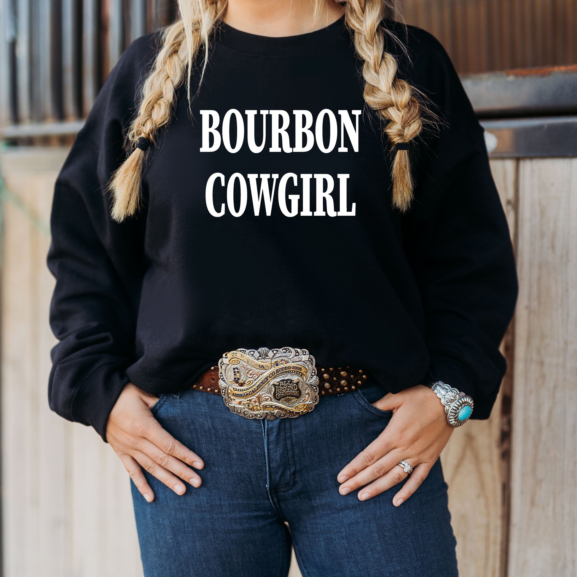 Bourbon Cowgirl Crew Neck Sweatshirt is super soft with our trademarked Bourbon Cowgirl across the chest in white lettering.