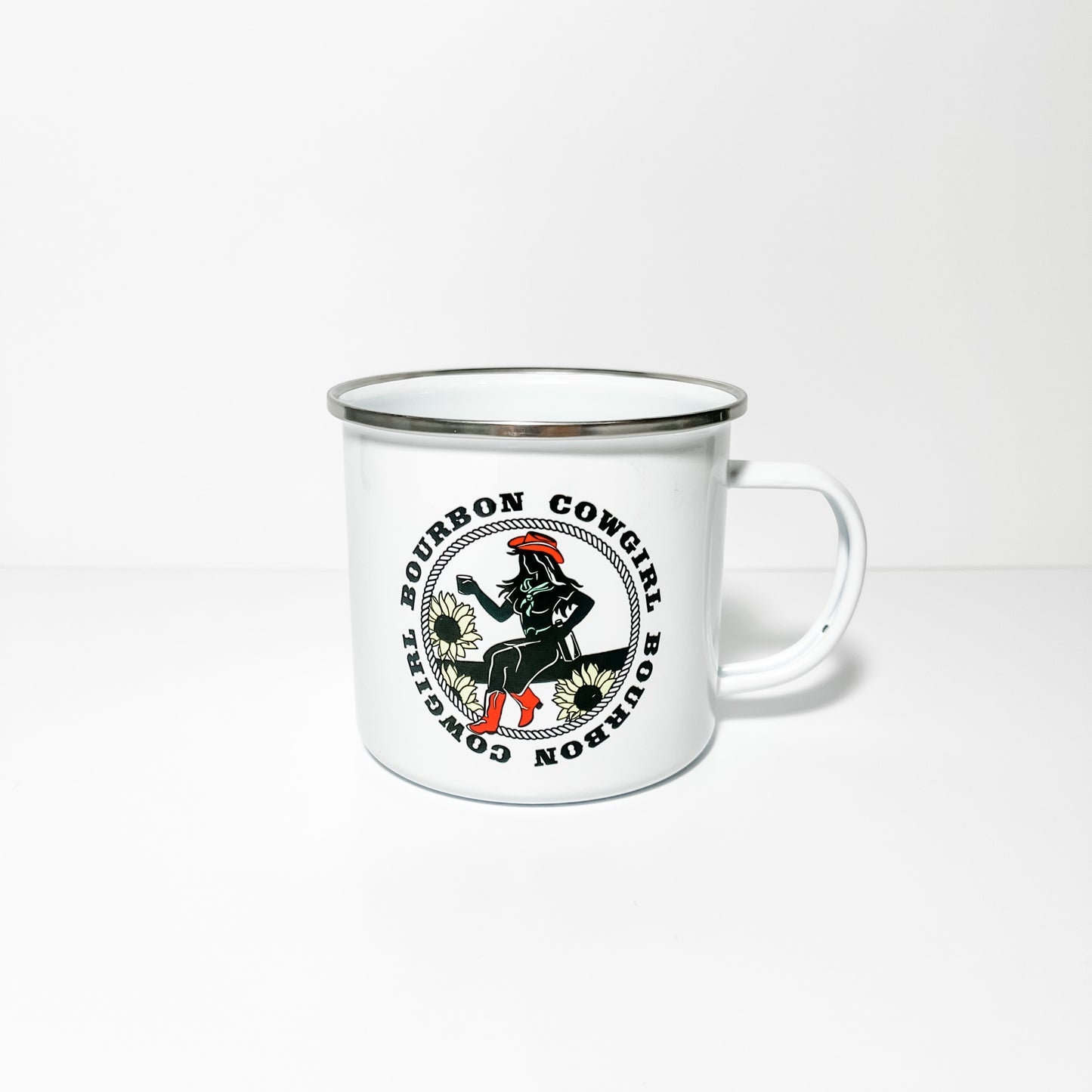 Bourbon Cowgirl Campfire Mug for the woman who proudly lives out loud. The Bourbon Cowgirl has earned her place in this world through blood, sweat and tears and isn’t shy about making it known that she’s a thriver, survivor and all around rockstar of a woman. Our sublimated 3 color printed design will not rub off or scratch off. Metal mug won't break like glass or ceramic mugs. Great for camping and travel.