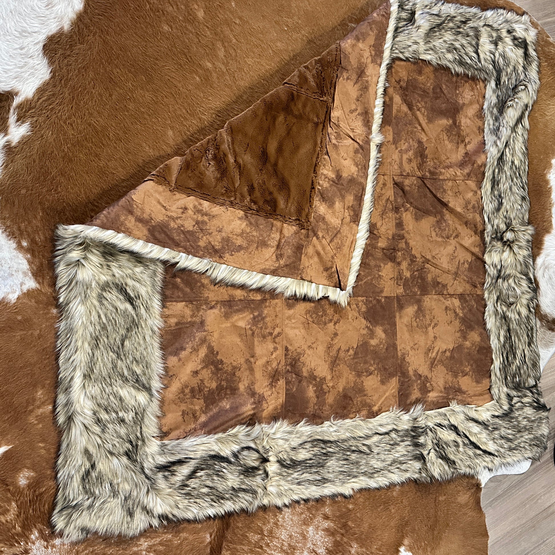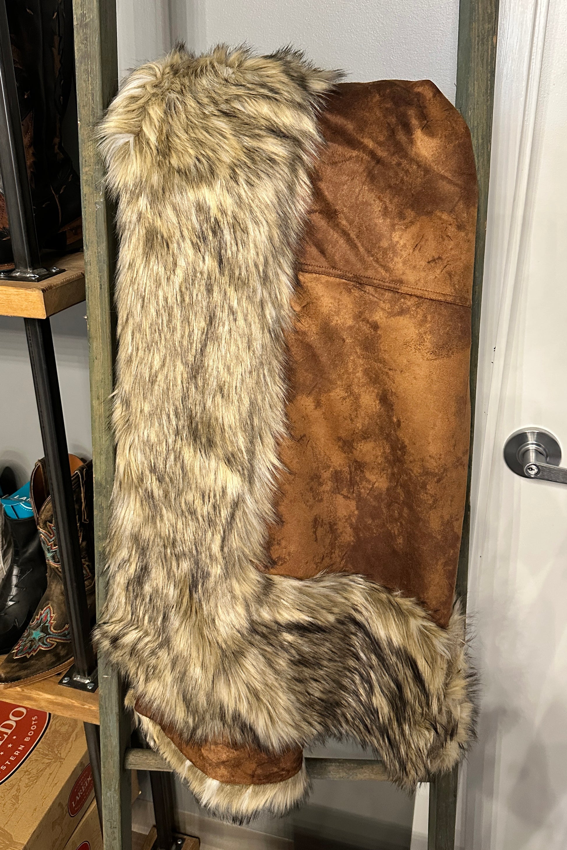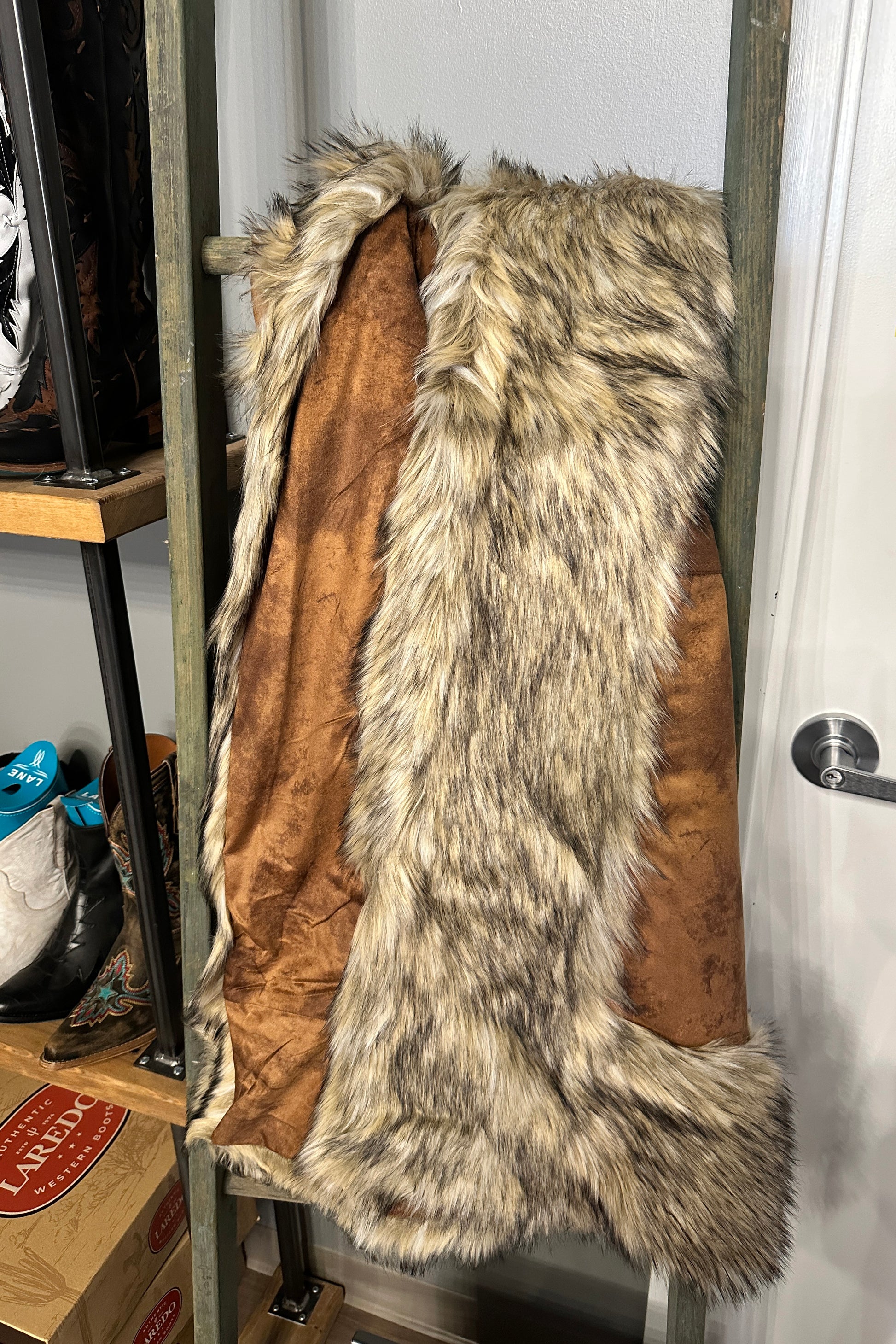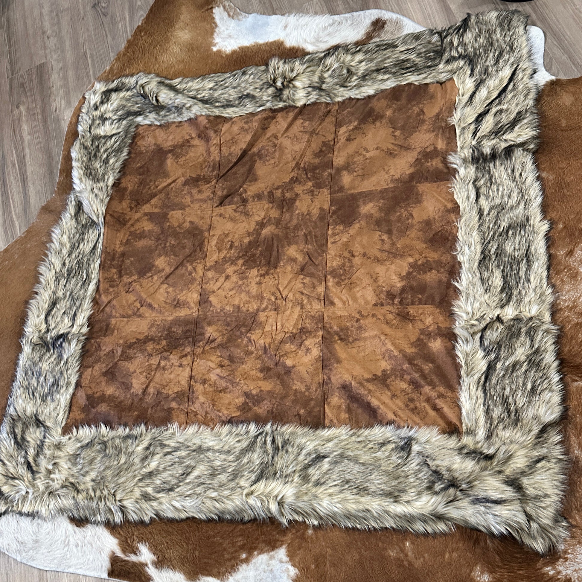 Bring a western flare to any living area with our new favorite throw! This throw will be the one everyone is fighting over during the holiday seasons! This throw features a beautiful latte cream super soft suede panel with faux fur surrounding the edges. This throw is super soft but also has the perfect amount of weight to it to keep you snuggly and warm throughout the winter season!