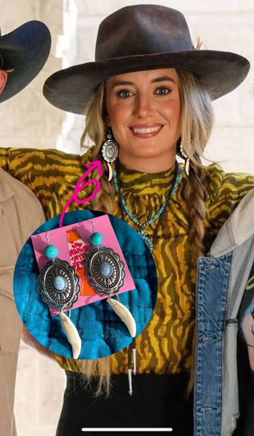 Concho +Coyote Teeth Earrings Lainey Wilson
