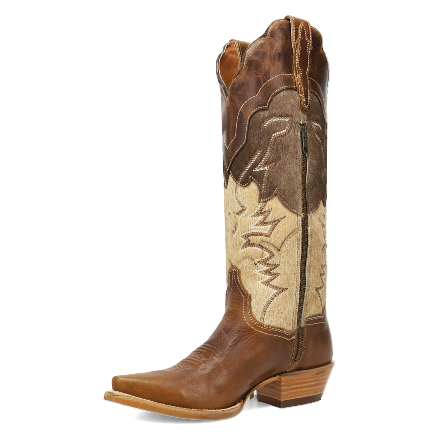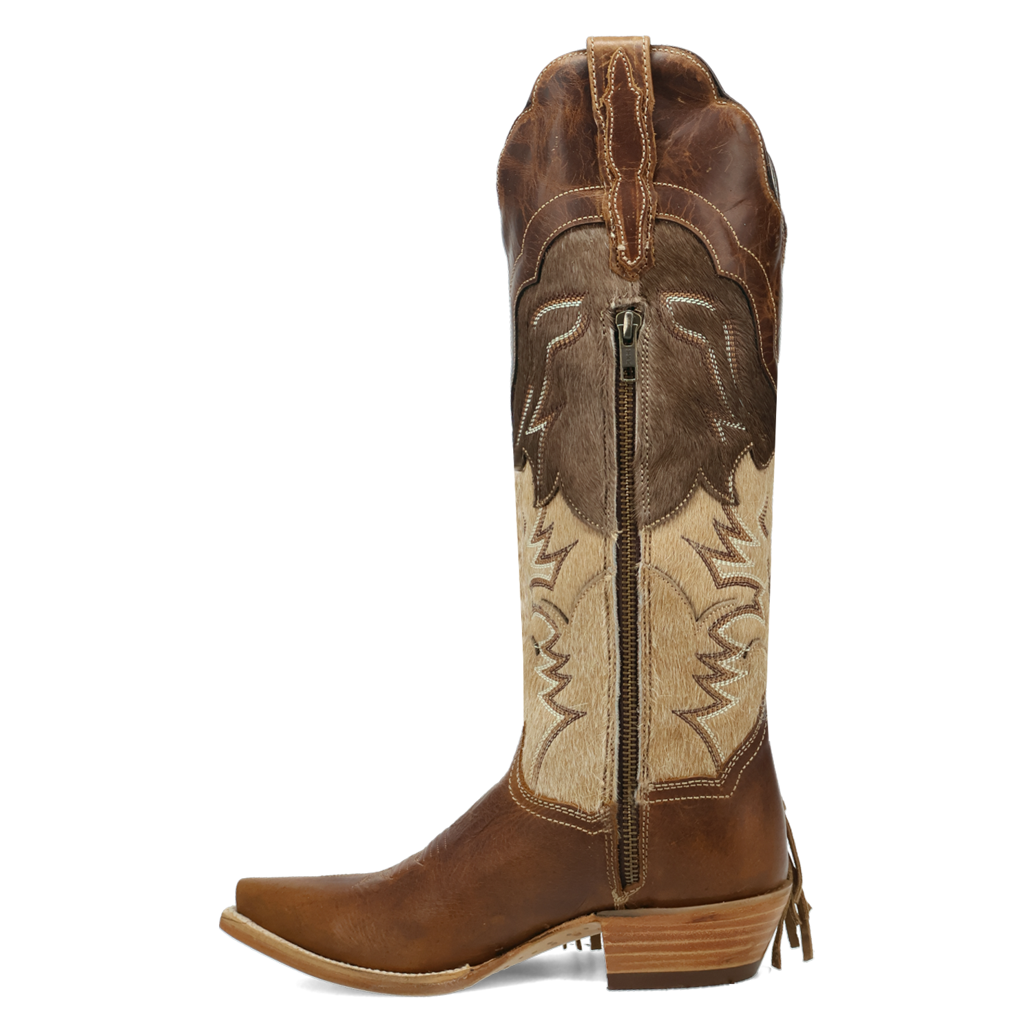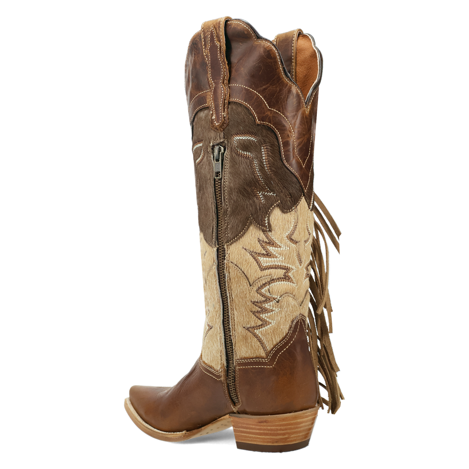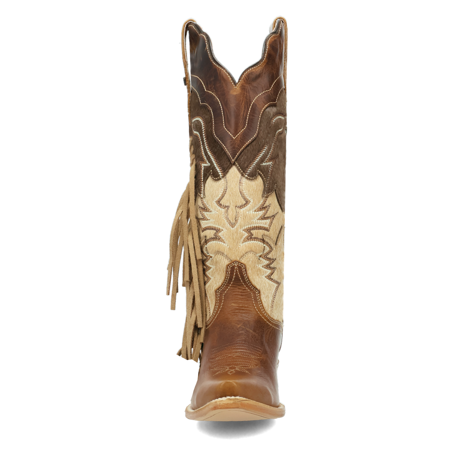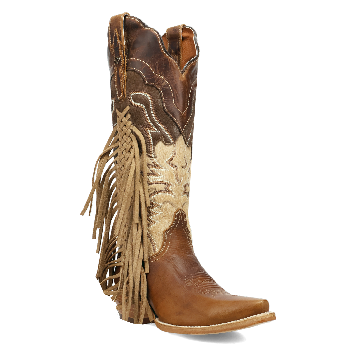 Unleash your inner cowgirl with the Dayla Boot, where classic style meets bold, untamed spirit. Featuring a timeless snip toe and cowboy medium heel, the 15-inch shaft is adorned with striking fringe and textured cowhide, creating a stunning contrast that turns heads with every step. Built with our Ultimate Flex insole, these boots will feel as good as the first time you put them on.