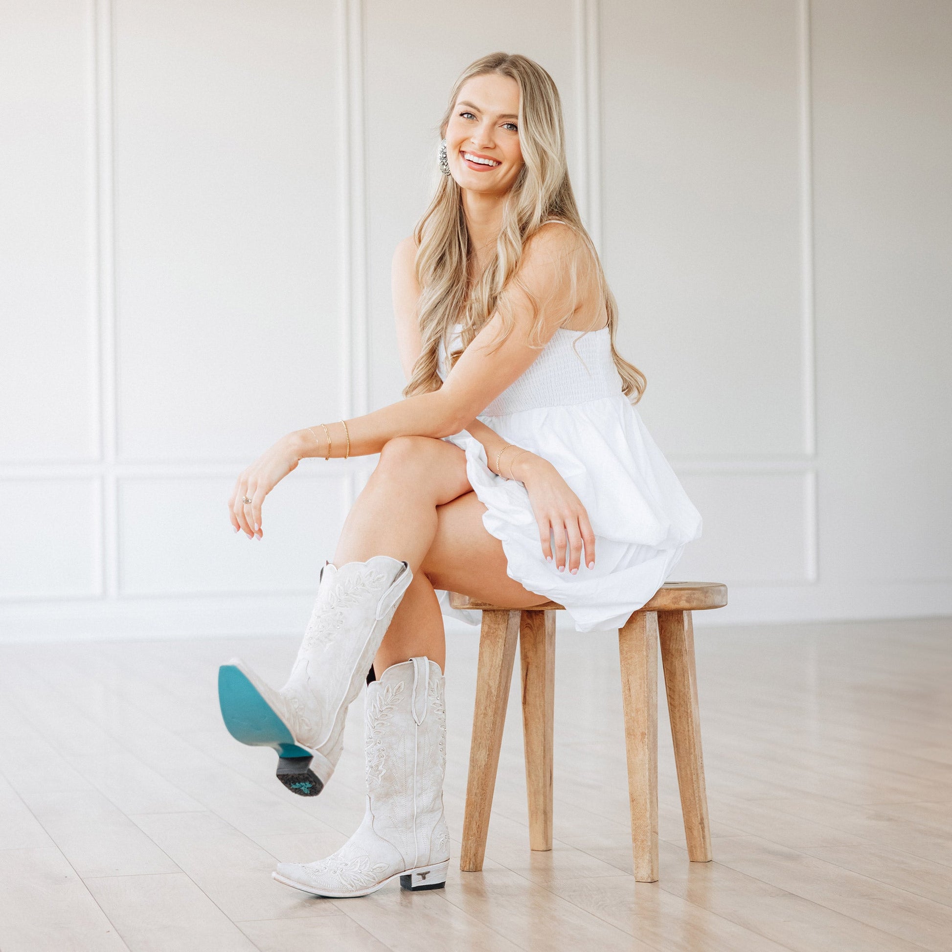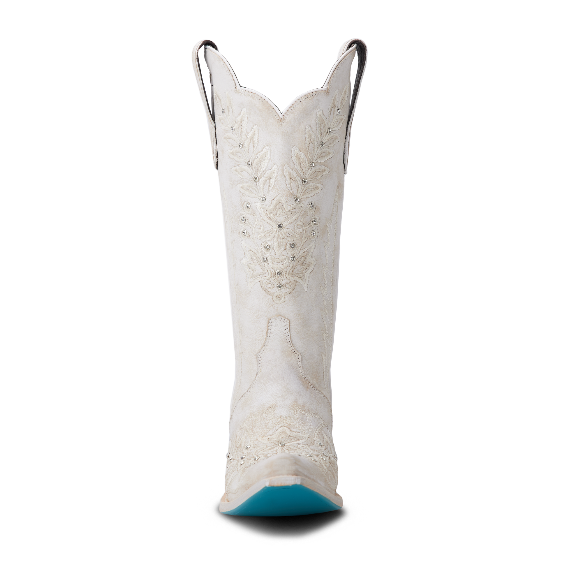 A captivating blend of bohemian-inspired embroidery and timeless flame-stitch detailing, the Destiny is designed to make your special day truly unforgettable. The Destiny features rim set crystals and a white-washed heel, adding a subtle touch of glamour and sophistication to your look. Whether you're saying "I do," or stepping out for a night of celebration, she exudes elegance and charm with every step.