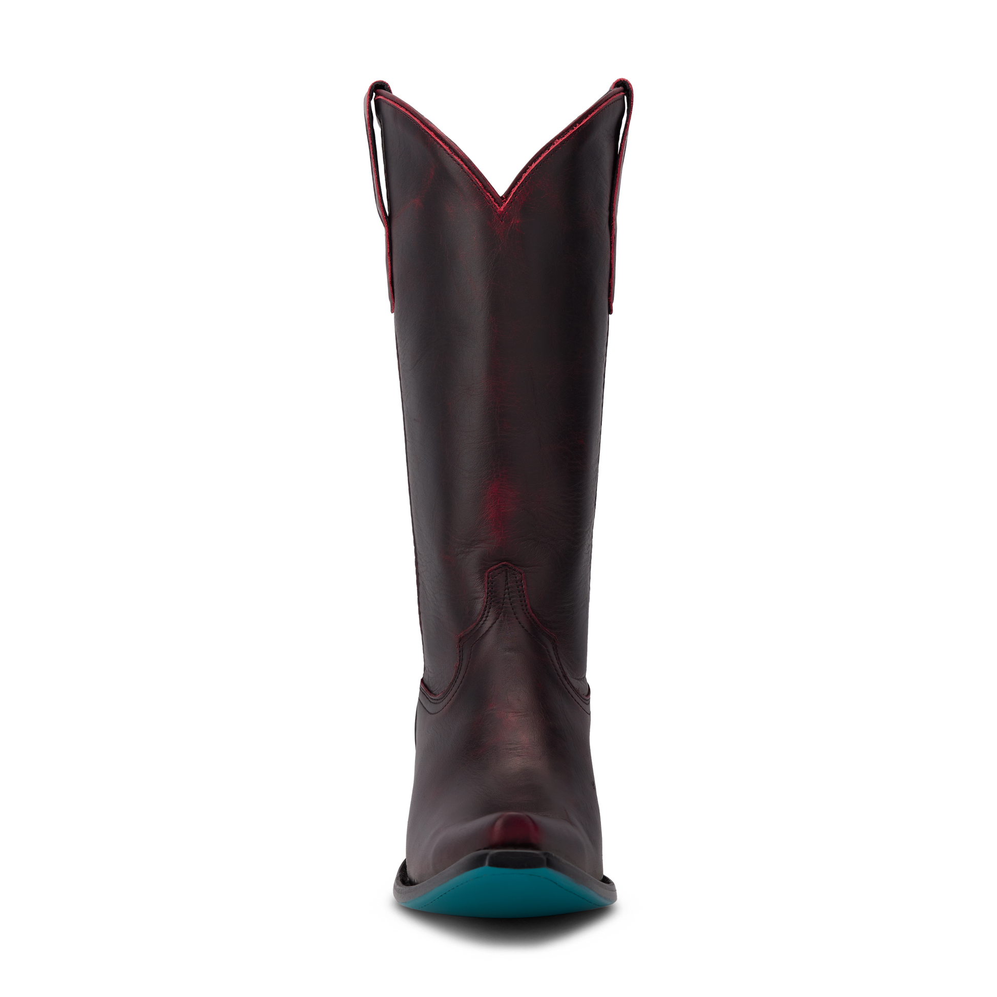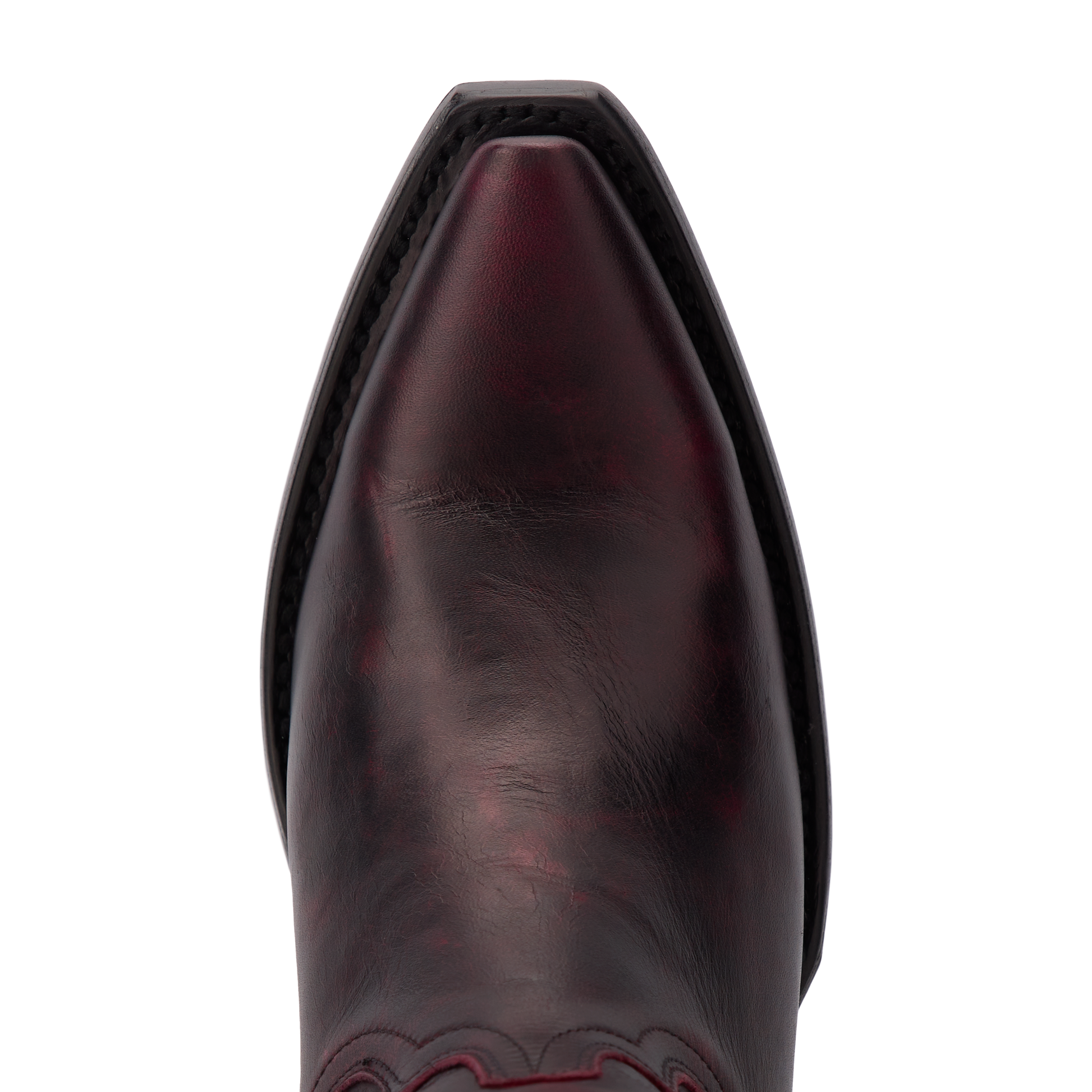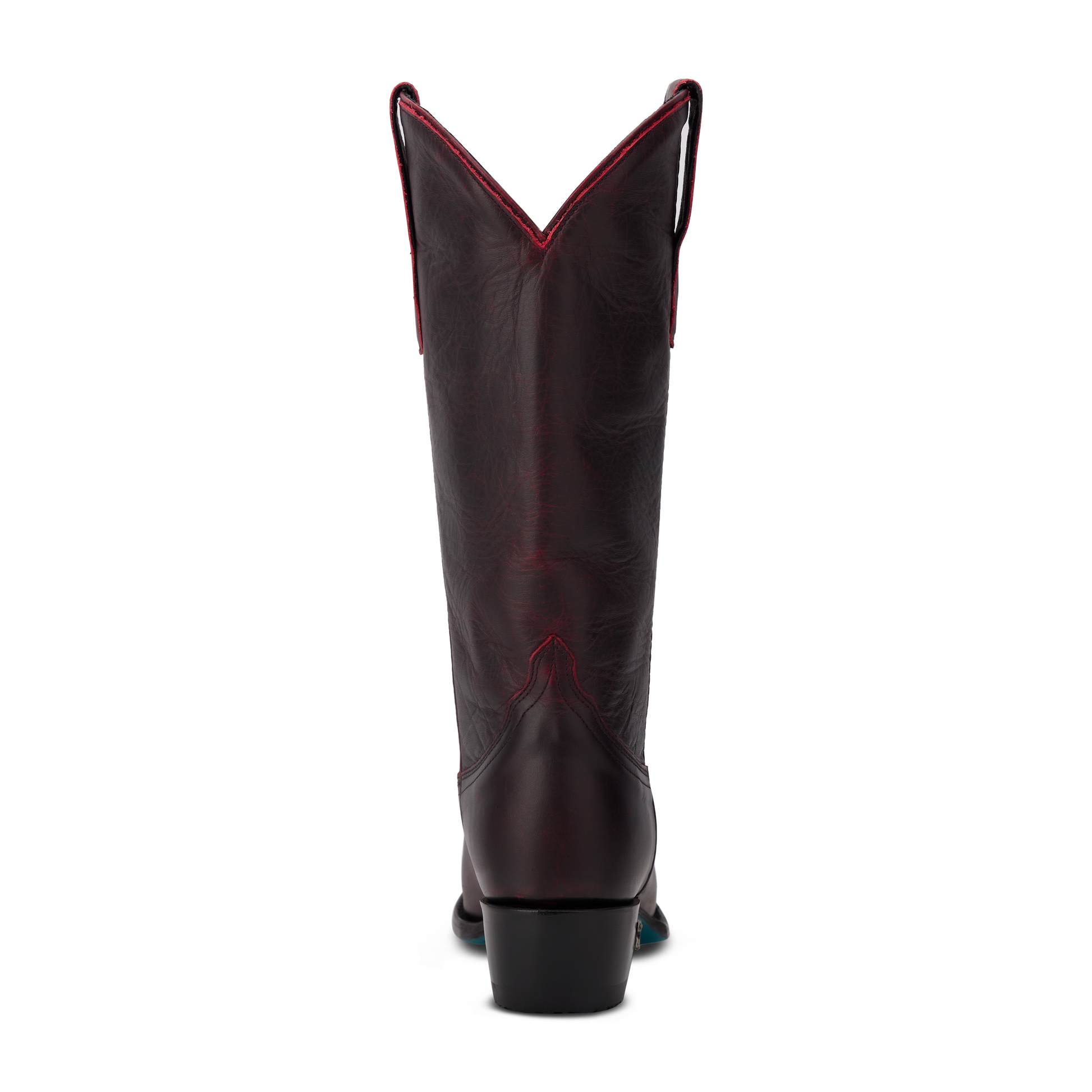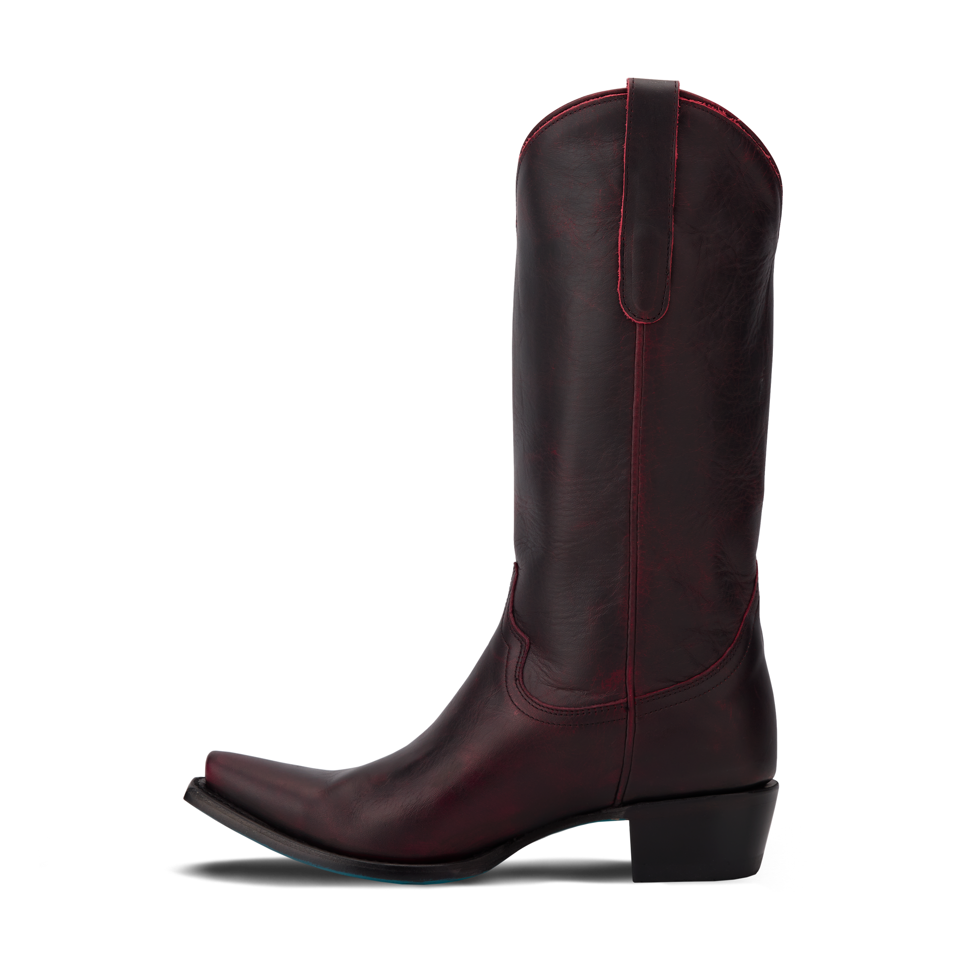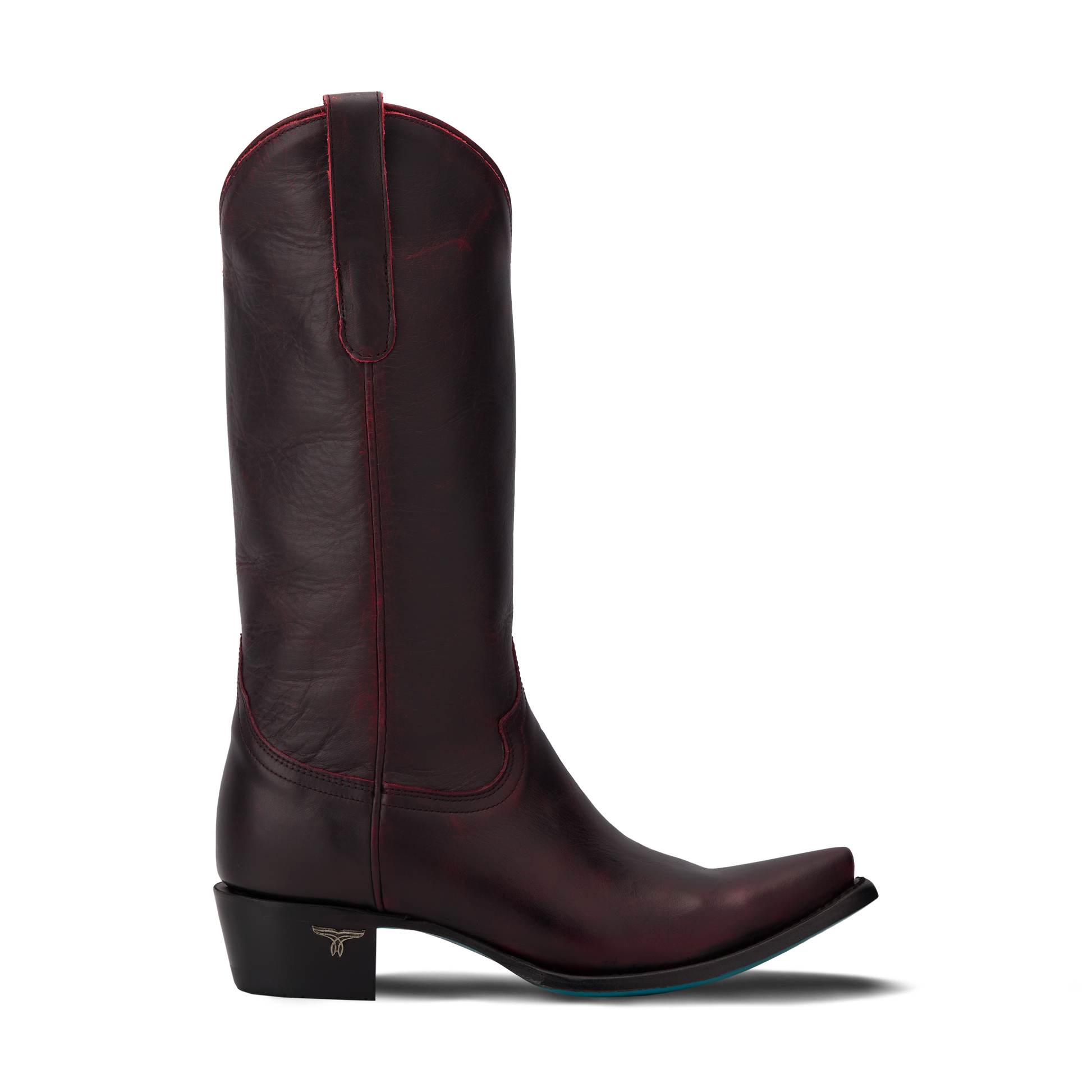 It's giving western. Timeless snip toe and classic cowgirl silhouette. Meet Emma Jane in Black Cherry.