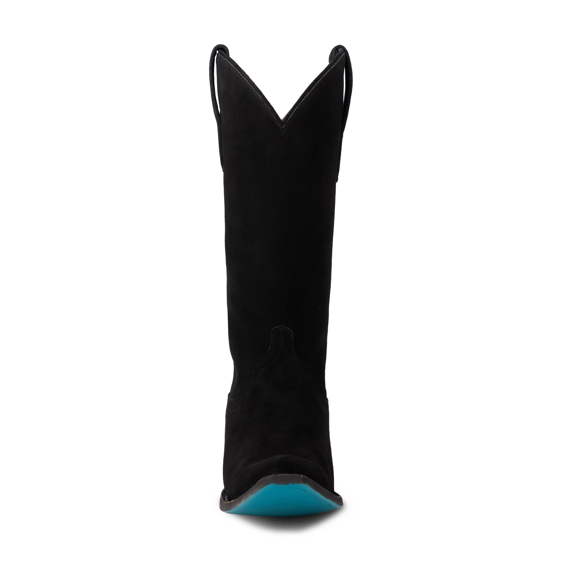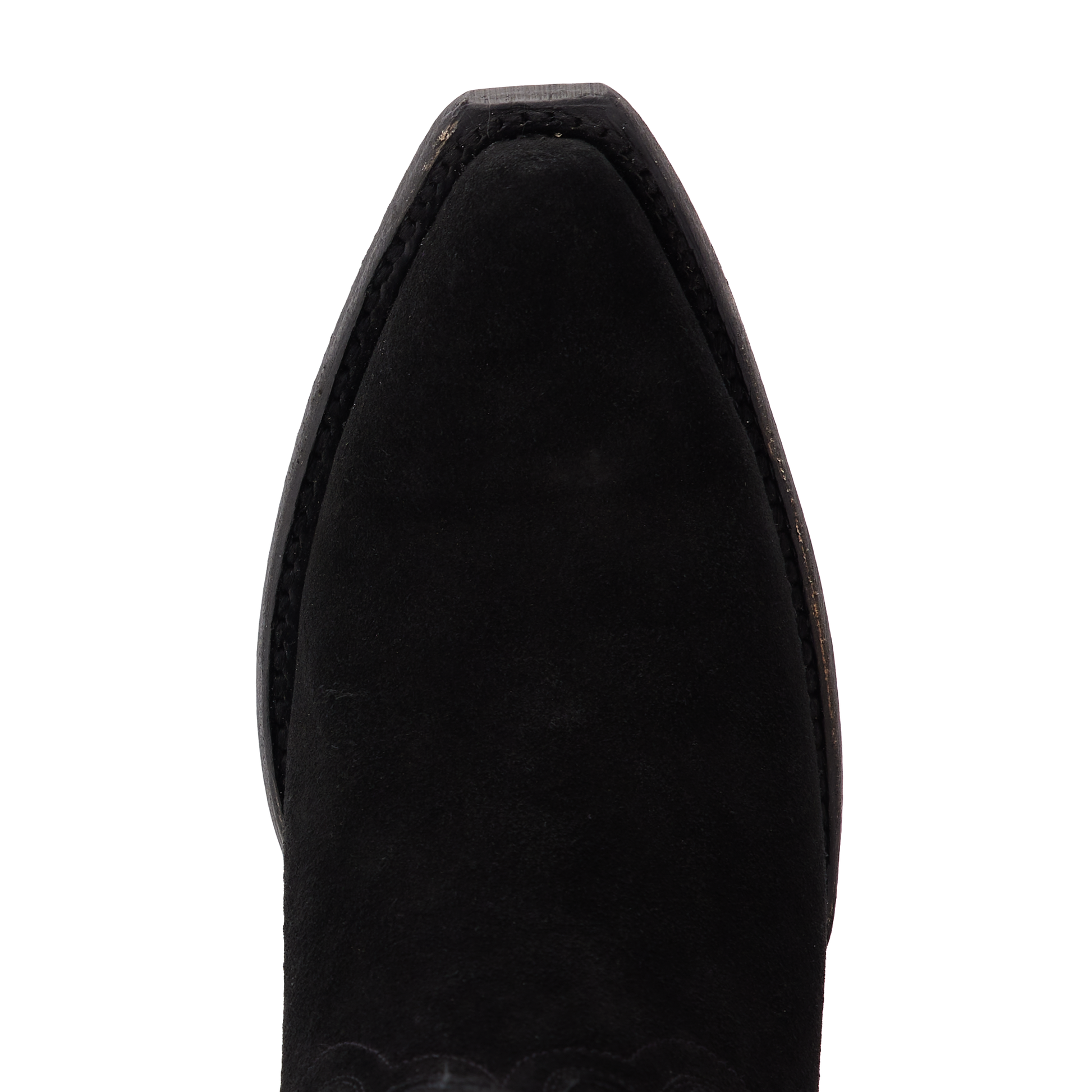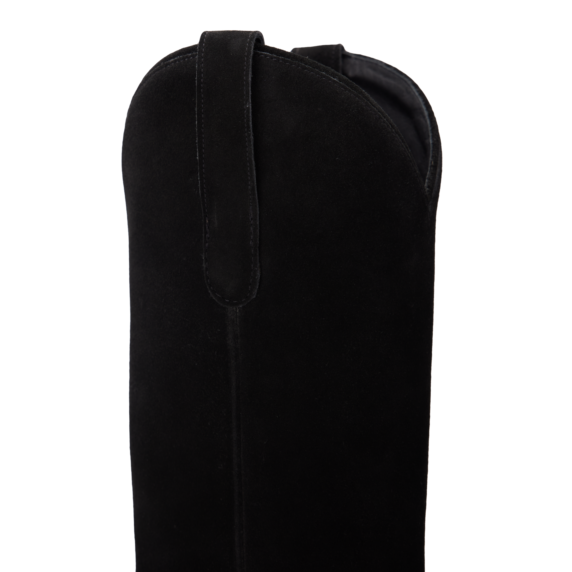 It's giving western. Timeless snip toe and classic cowgirl silhouette. Meet Emma Jane in Soft Black Suede.