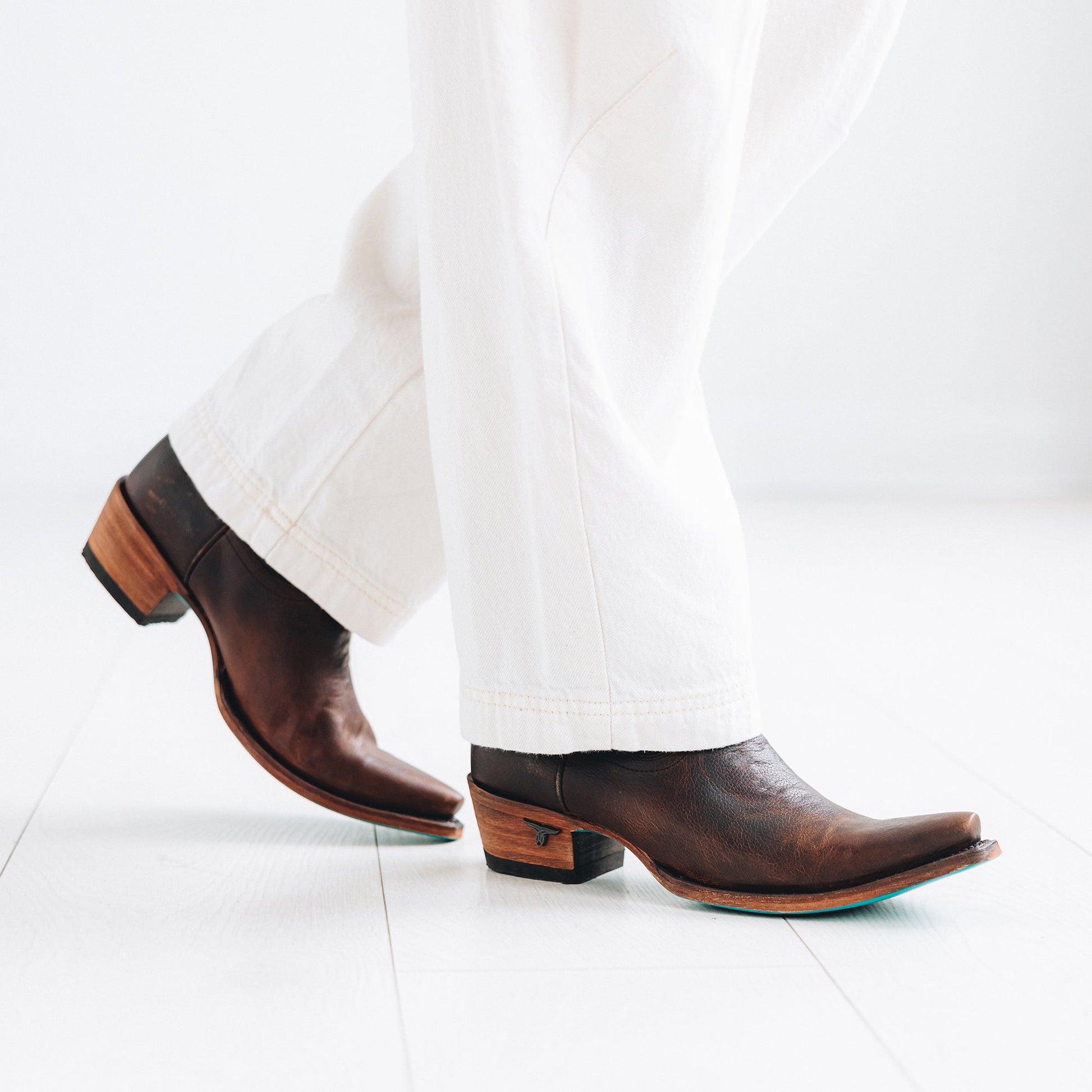It's giving western. Timeless snip toe and classic cowgirl bootie silhouette. Meet Emma Jane Bootie. She is versatile and pairs well with your wardrobe. If you love her, buy her in every color.