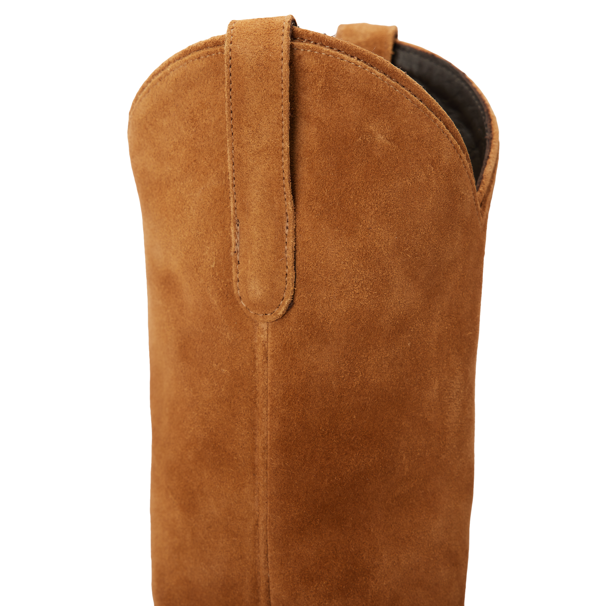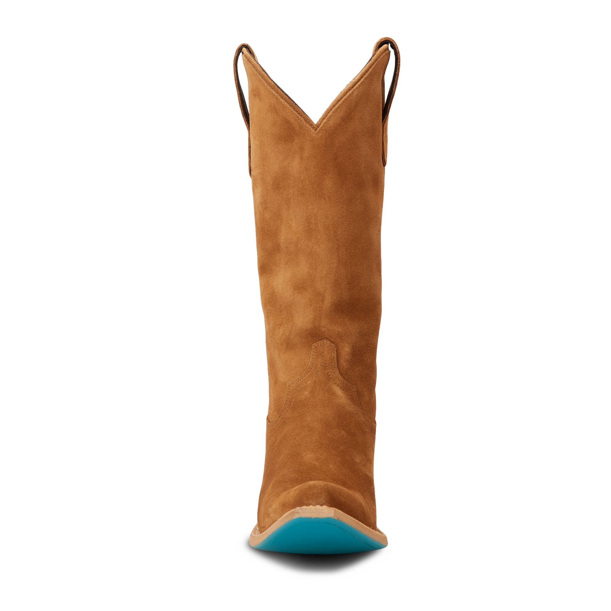 It's giving western. Timeless snip toe and classic cowgirl silhouette. Meet Emma Jane in Toffee Suede.