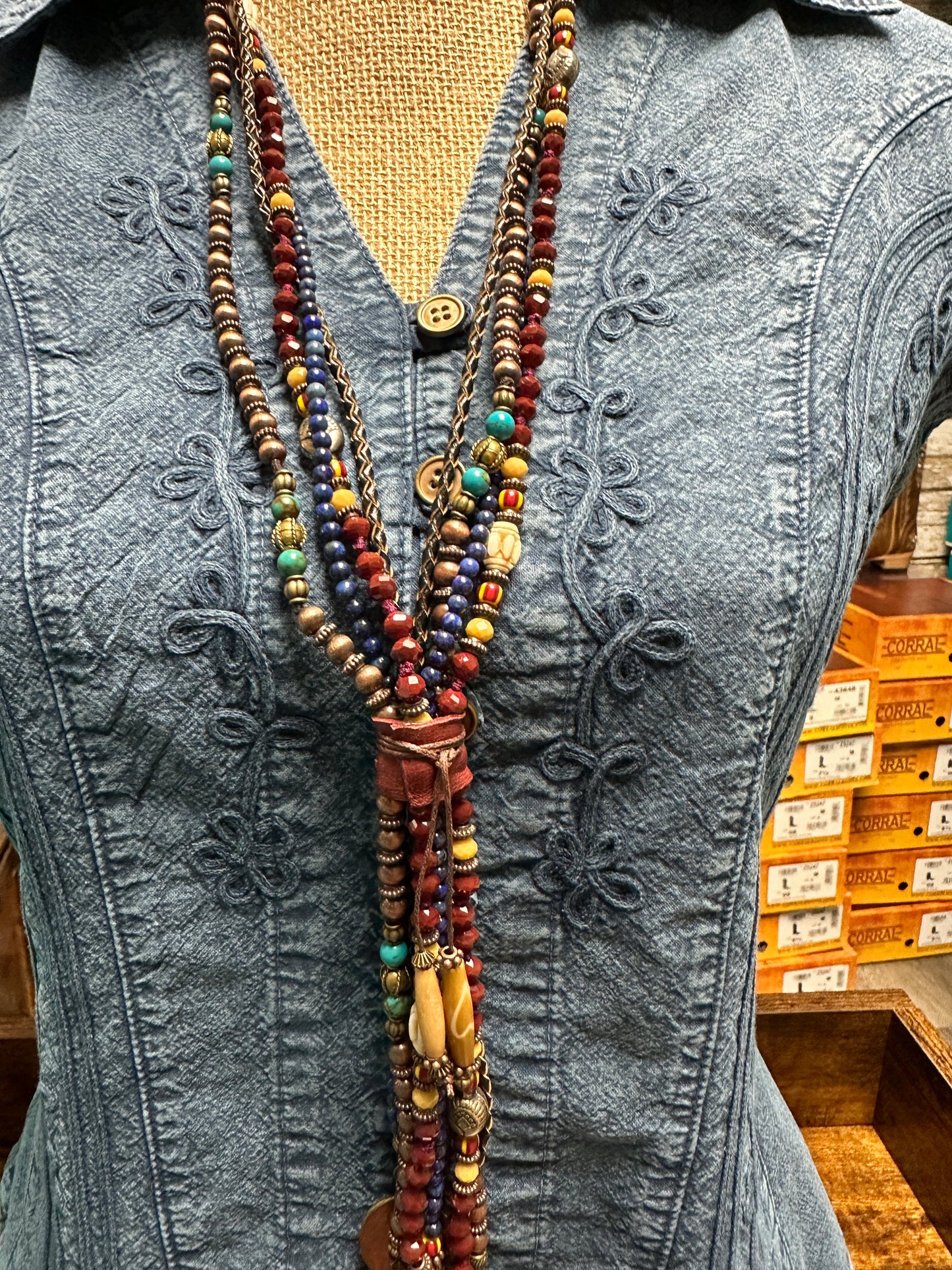 Lapis, Bone & Burgundy Bead Clutch Necklace - Amy Kaplan for Bourbon Cowgirl