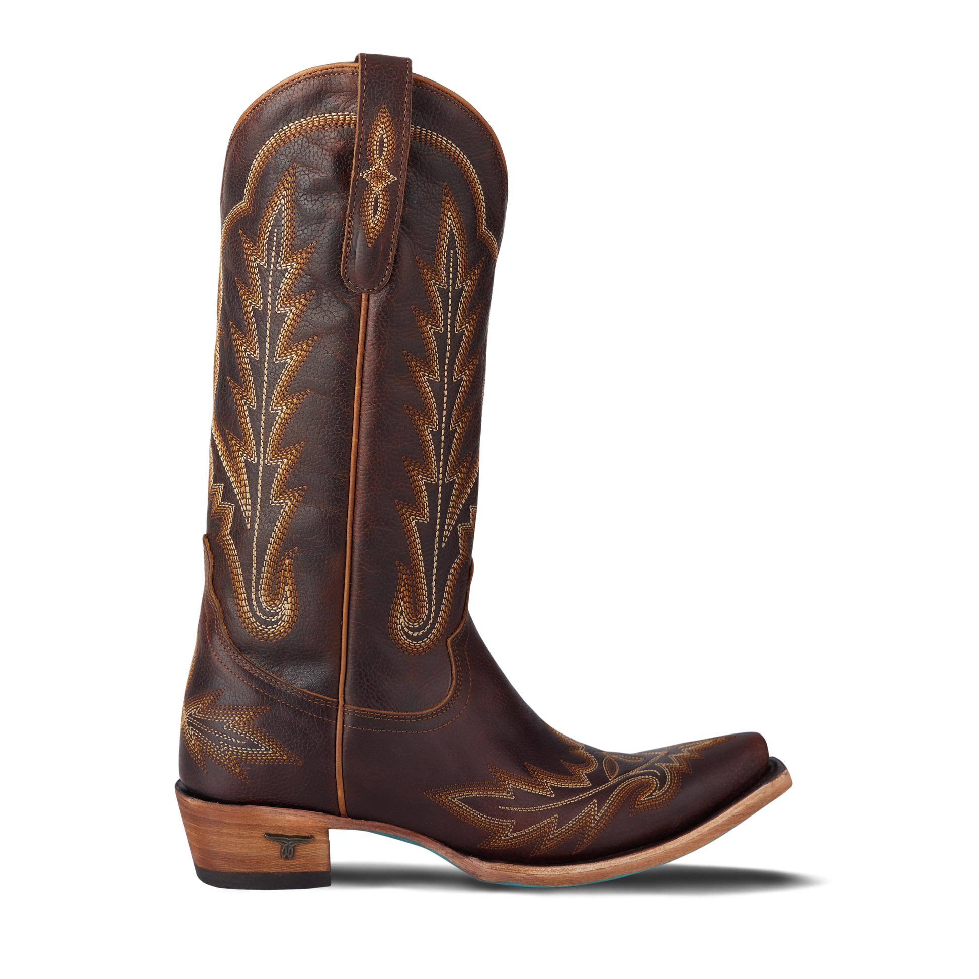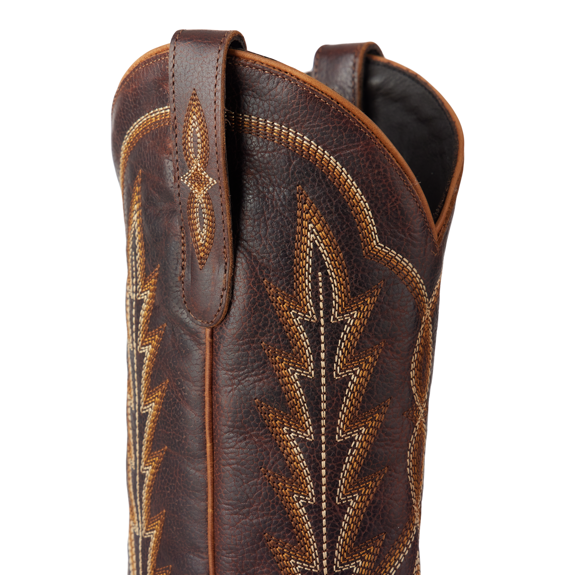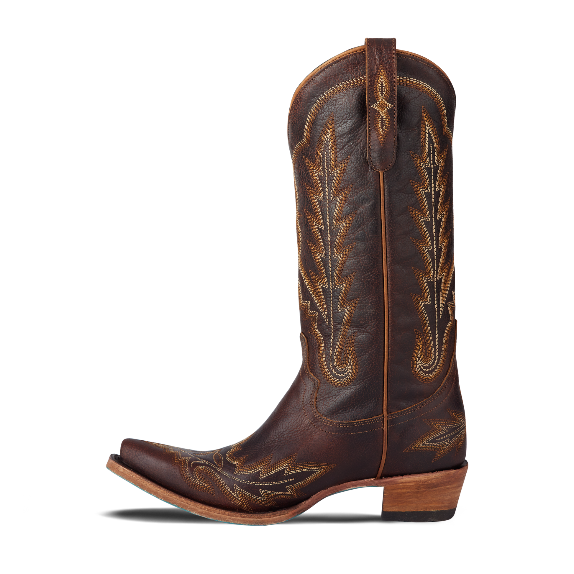 Heirloom quality boots with a core western influence. Meet Lexington Cognac. The classic snip toe profile is embroidered to perfection with a twist on a traditional flame stitch.