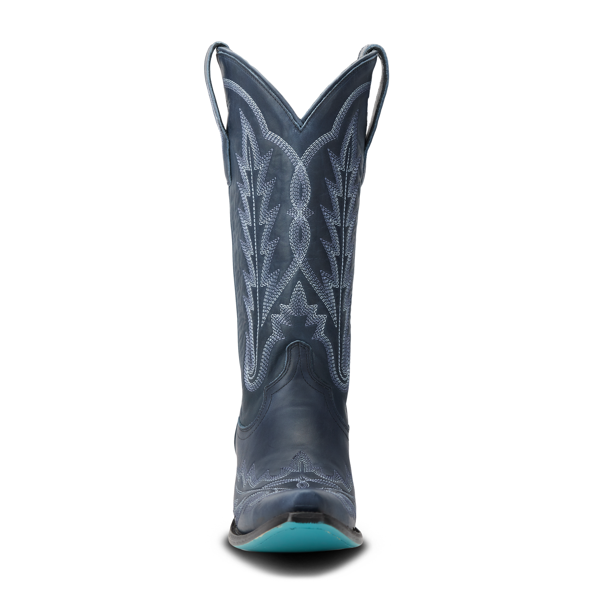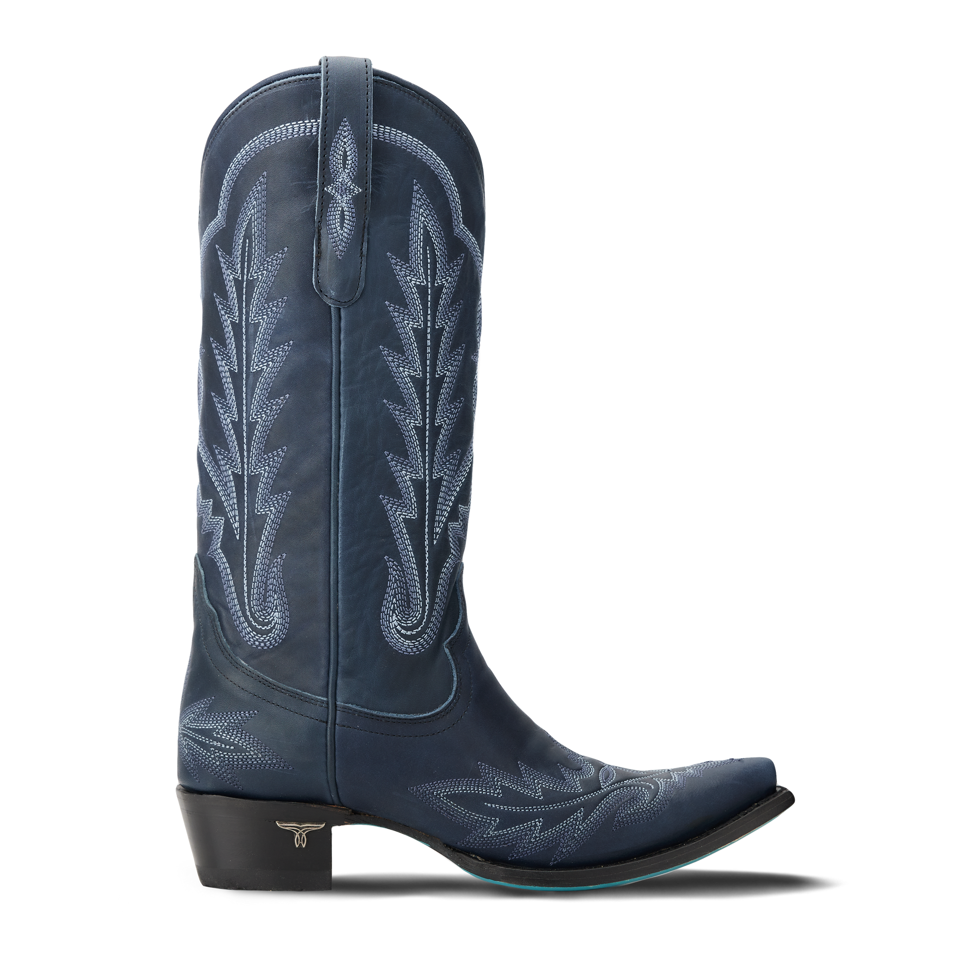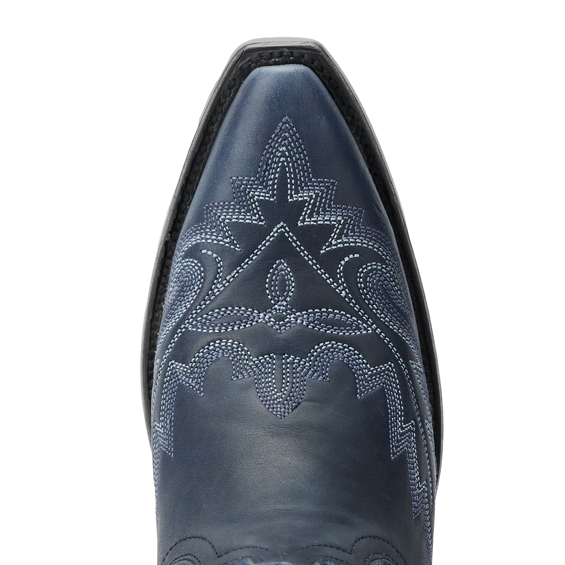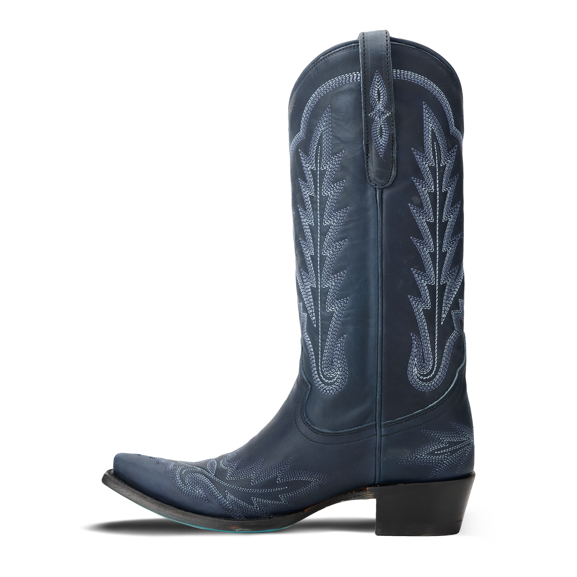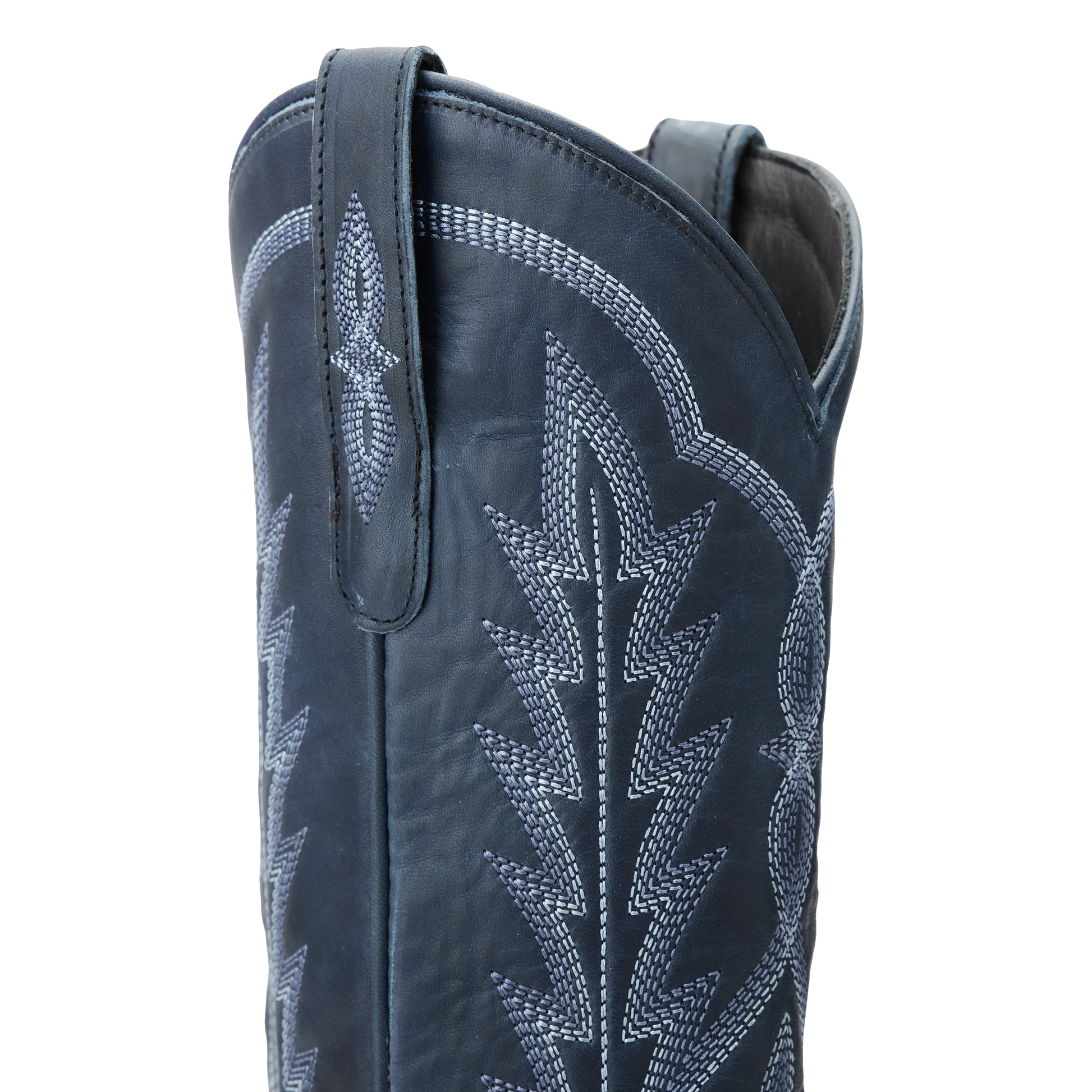 Heirloom quality boots with a core western influence. The classic snip toe profile is embroidered to perfection with a twist on traditional flame stitch.