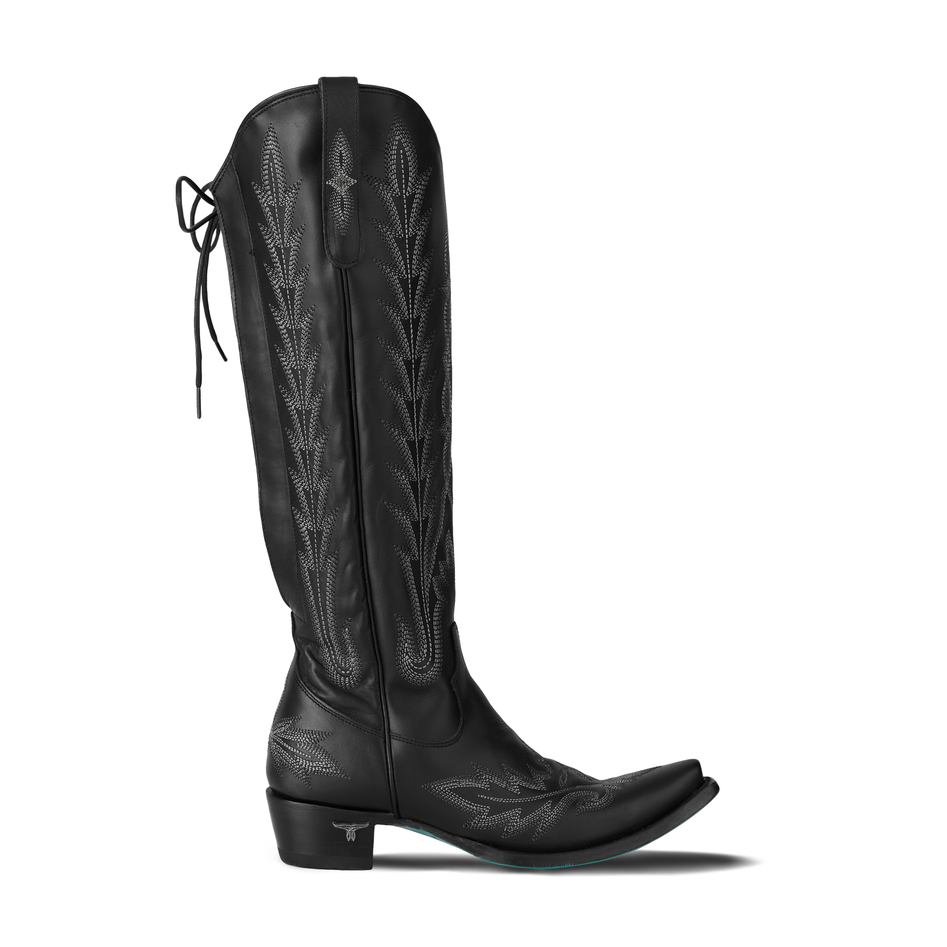 Heirloom quality with a core western influence. The classic snip toe profile is embroidered to perfection with a twist on traditional flame stitch and a functional corset back. The Lexington Knee-High is timeless and sexy all wrapped in one.