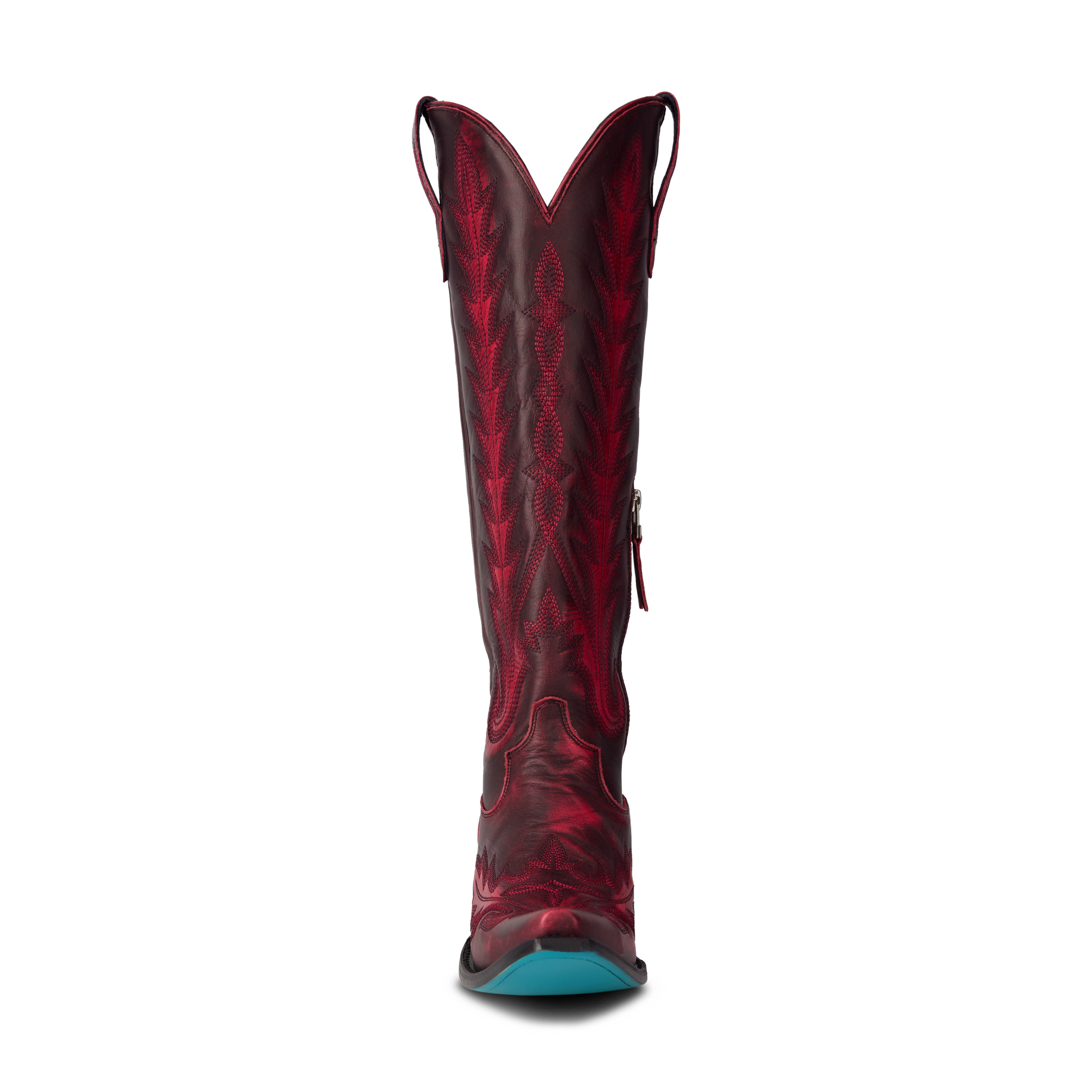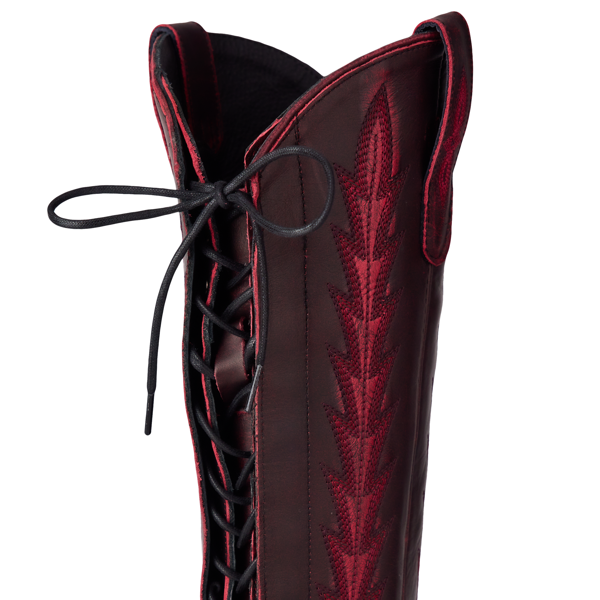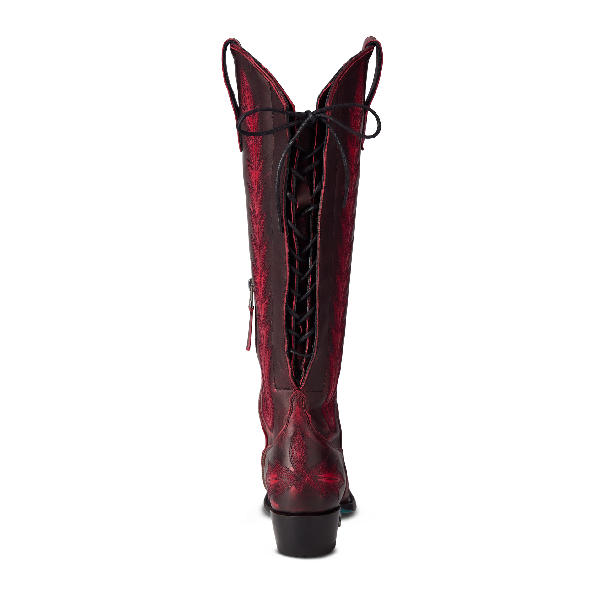 Heirloom quality with a core western influence. The classic snip toe profile is embroidered to perfection with a twist on traditional flame stitch and a functional corset back. The Lexington Knee-High is timeless and sexy all wrapped in one.