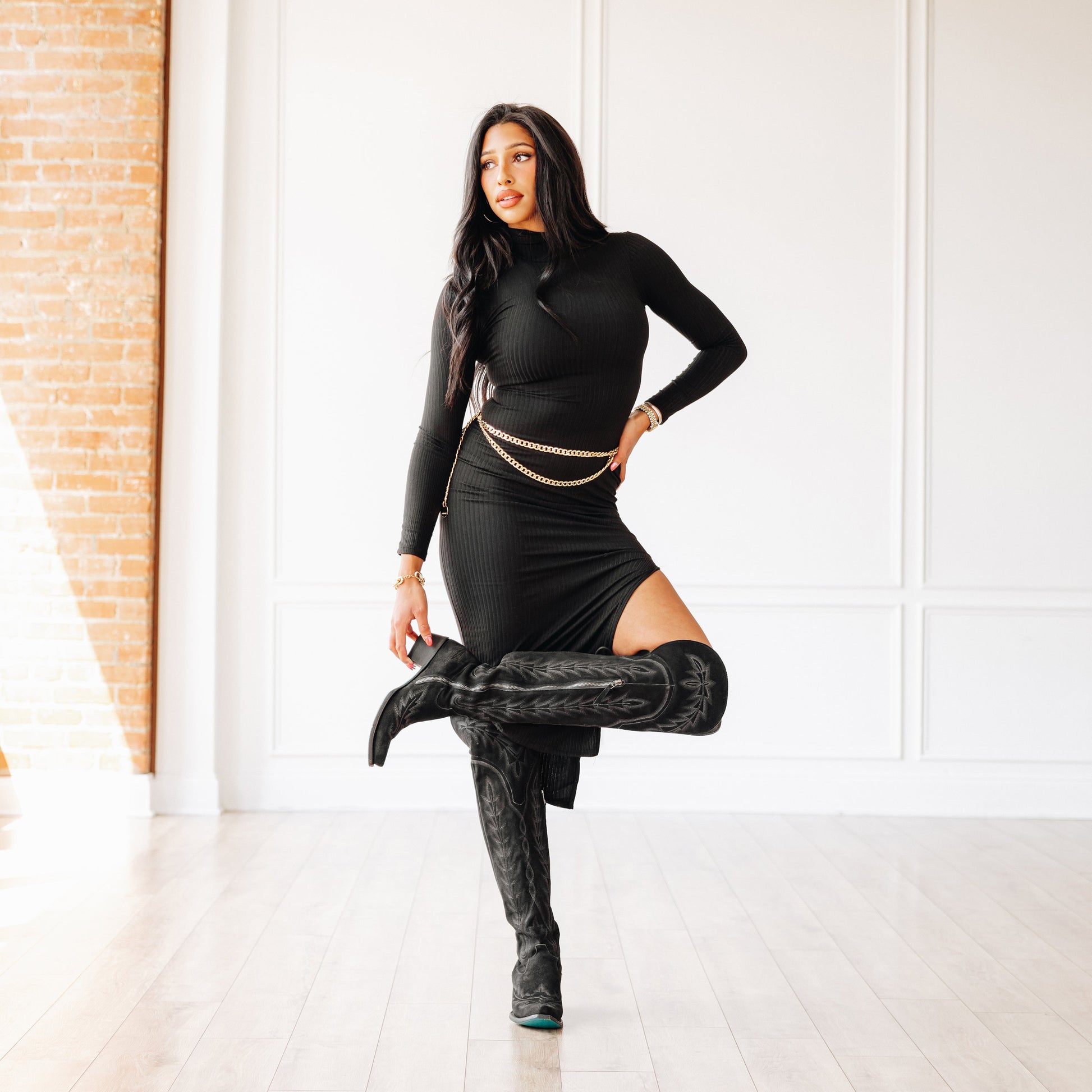 Sexy Over the Knee boot kicking classic retro stitch up all the notches. Functional corset with wide tongue to accommodate all sexy leg types. Customize the corset to your leg one time and the easy in, easy out zipper will take care of the rest.