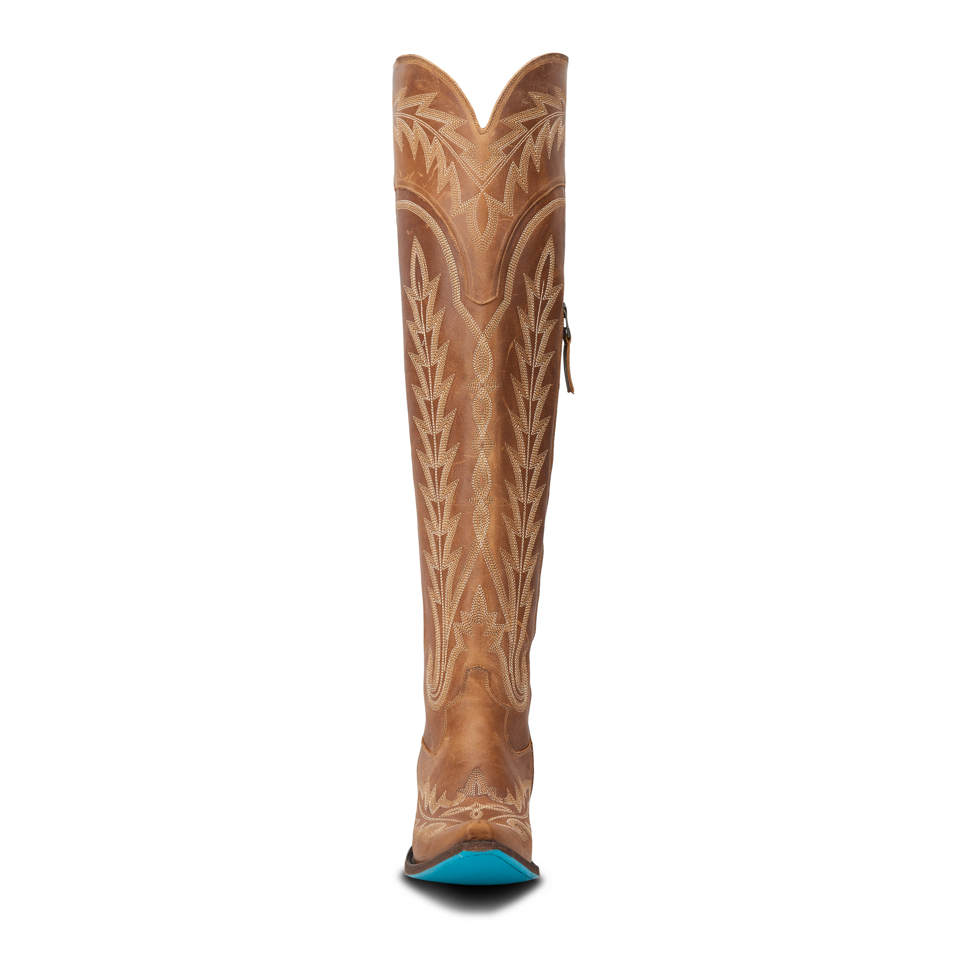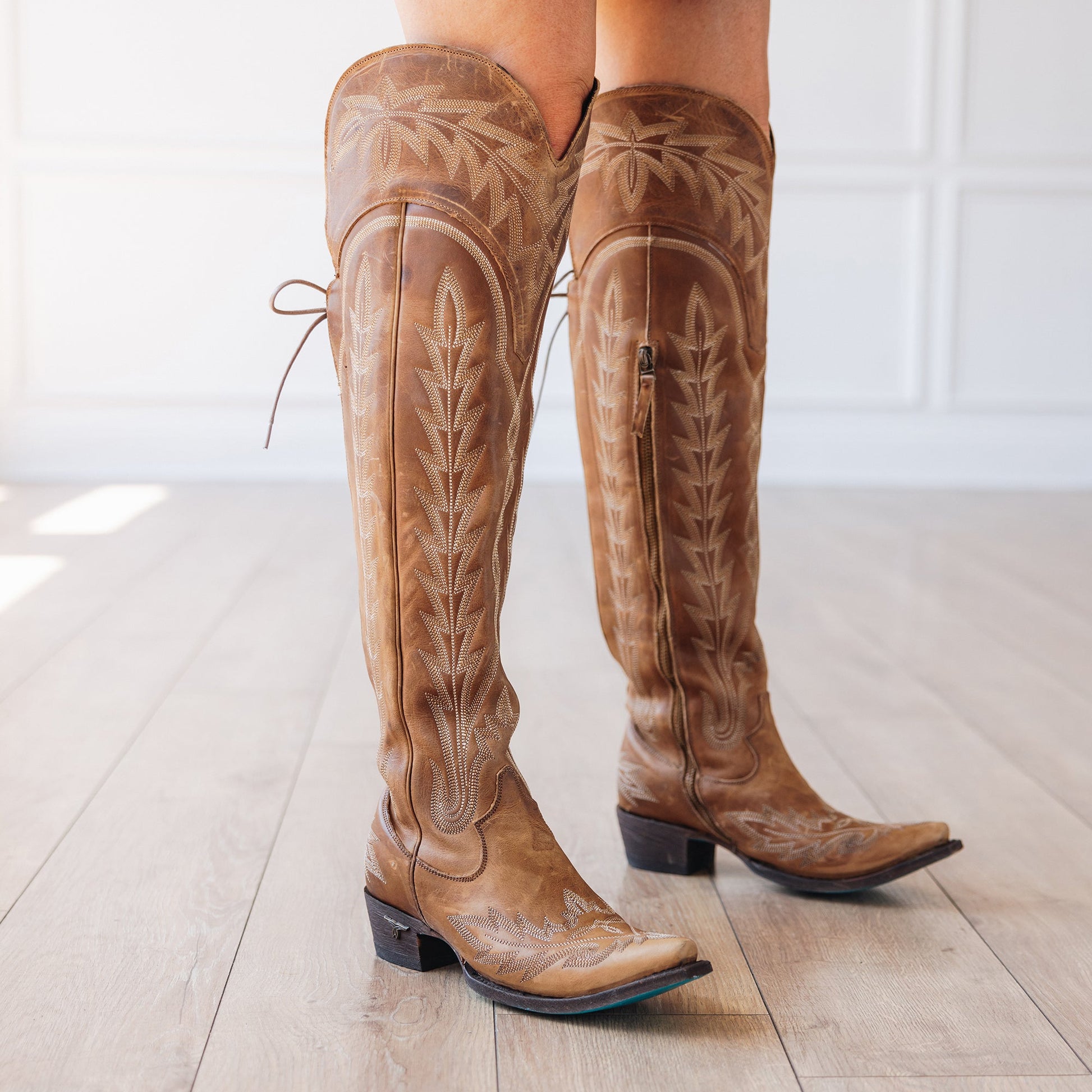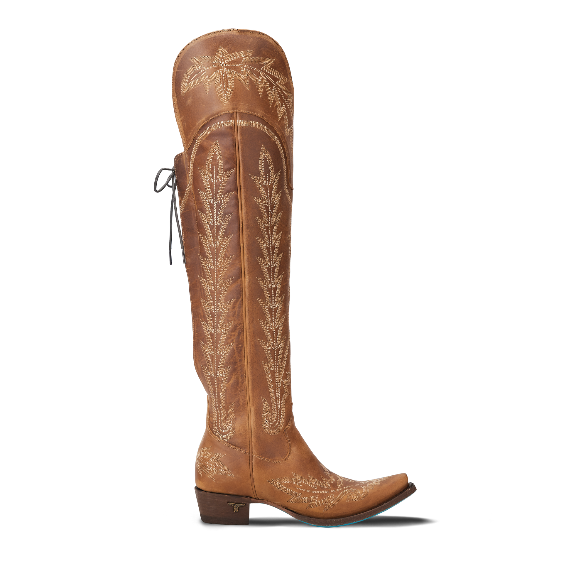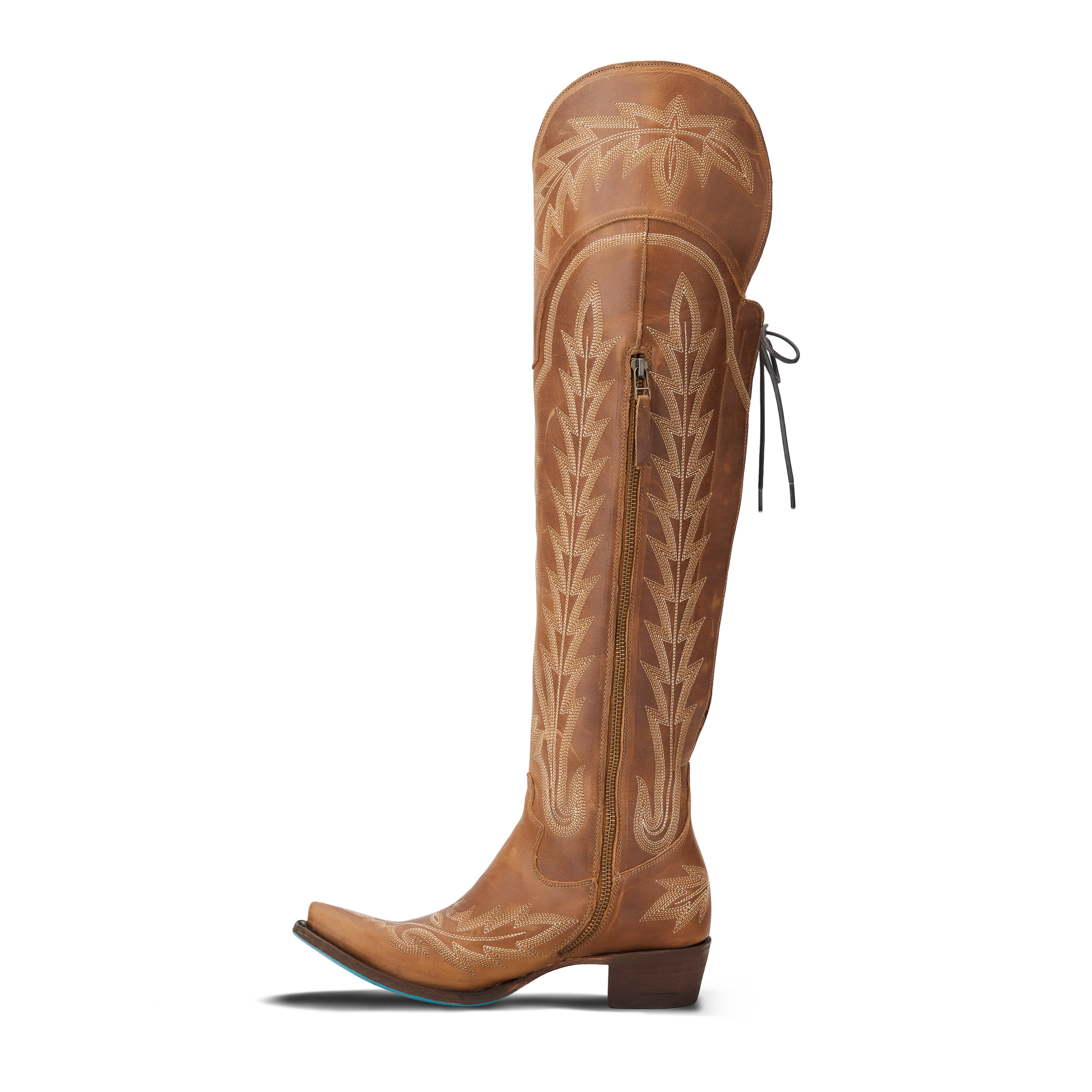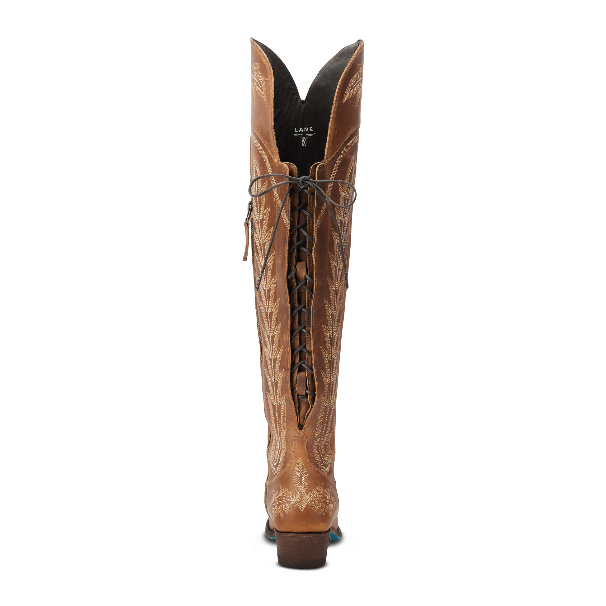 Sexy Over the Knee boot kicking classic retro stitch up all the notches. Functional corset with wide tongue to accommodate all sexy leg types. Customize the corset to your leg one time and the easy in, easy out zipper will take care of the rest.