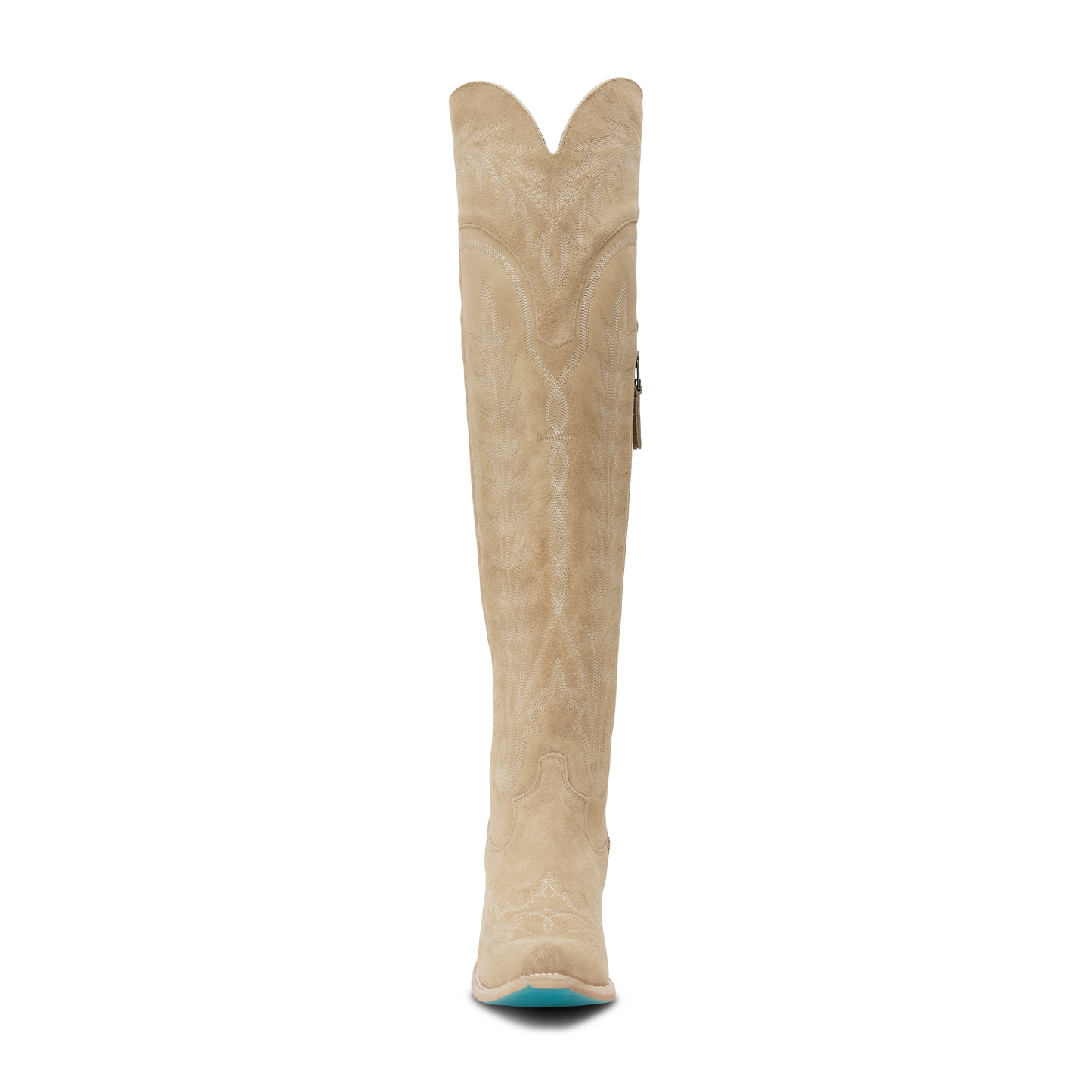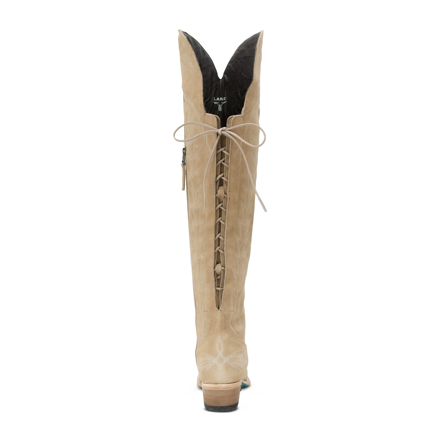 Sexy Over the Knee boot kicking classic retro stitch up all the notches.  Functional corset with wide tongue to accommodate all sexy leg types. Customize the corset to your leg one time and the easy in, easy out zipper will take care of the rest.