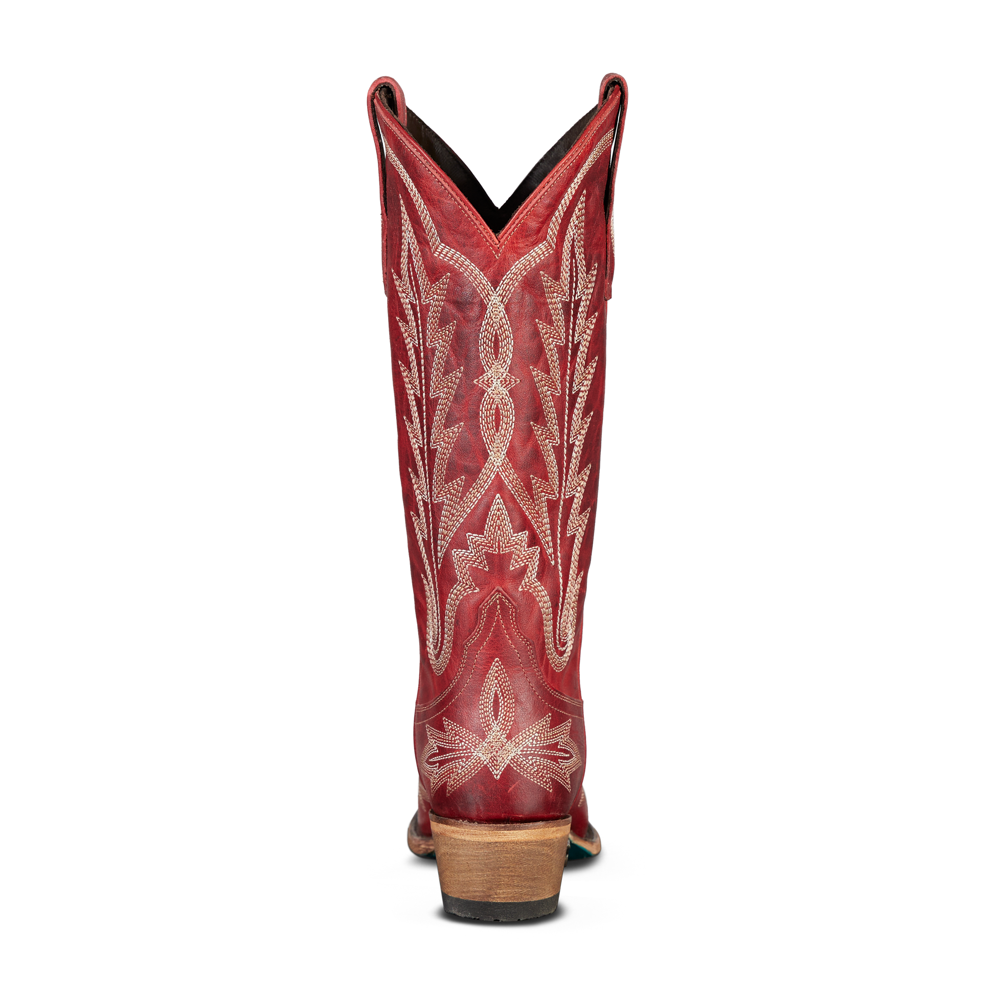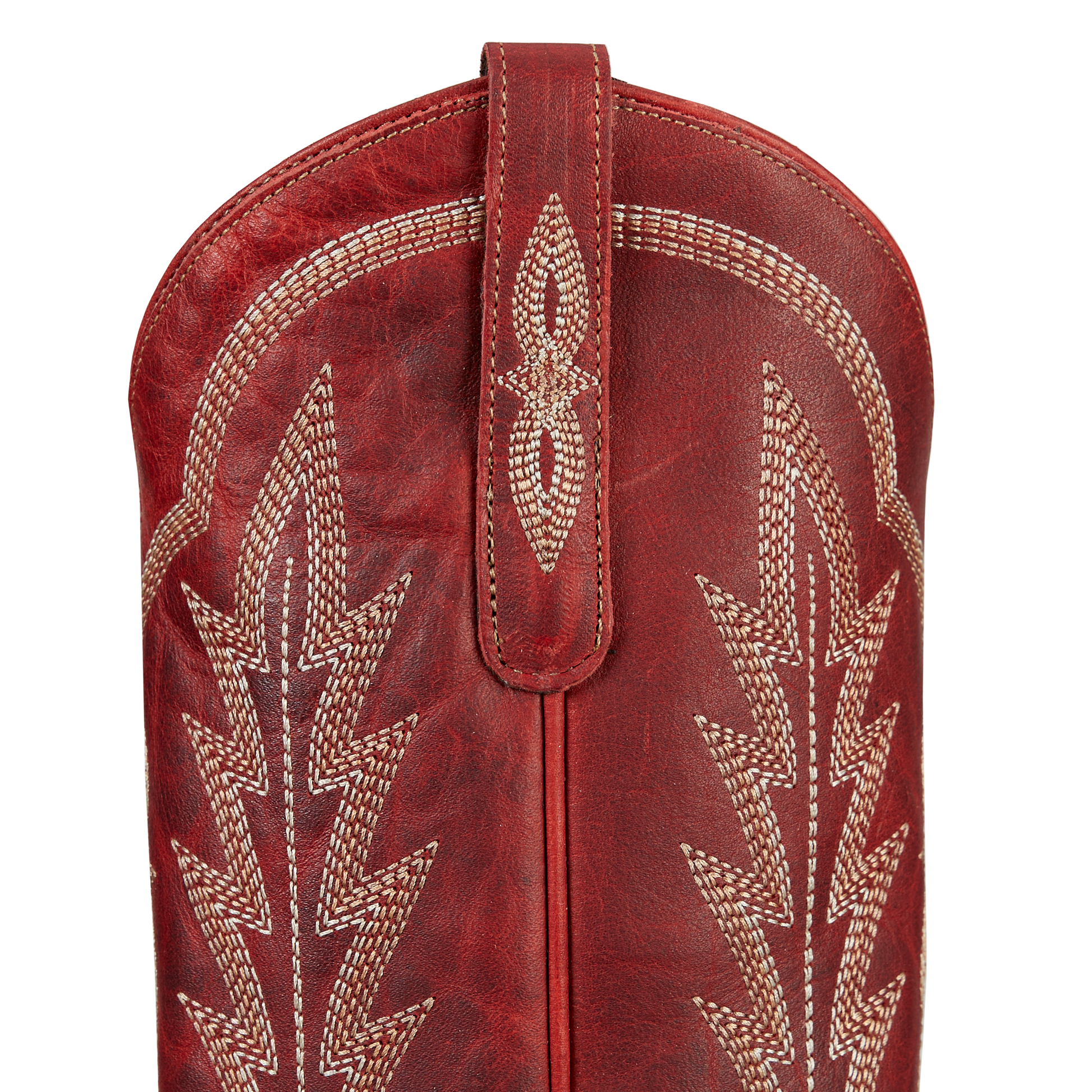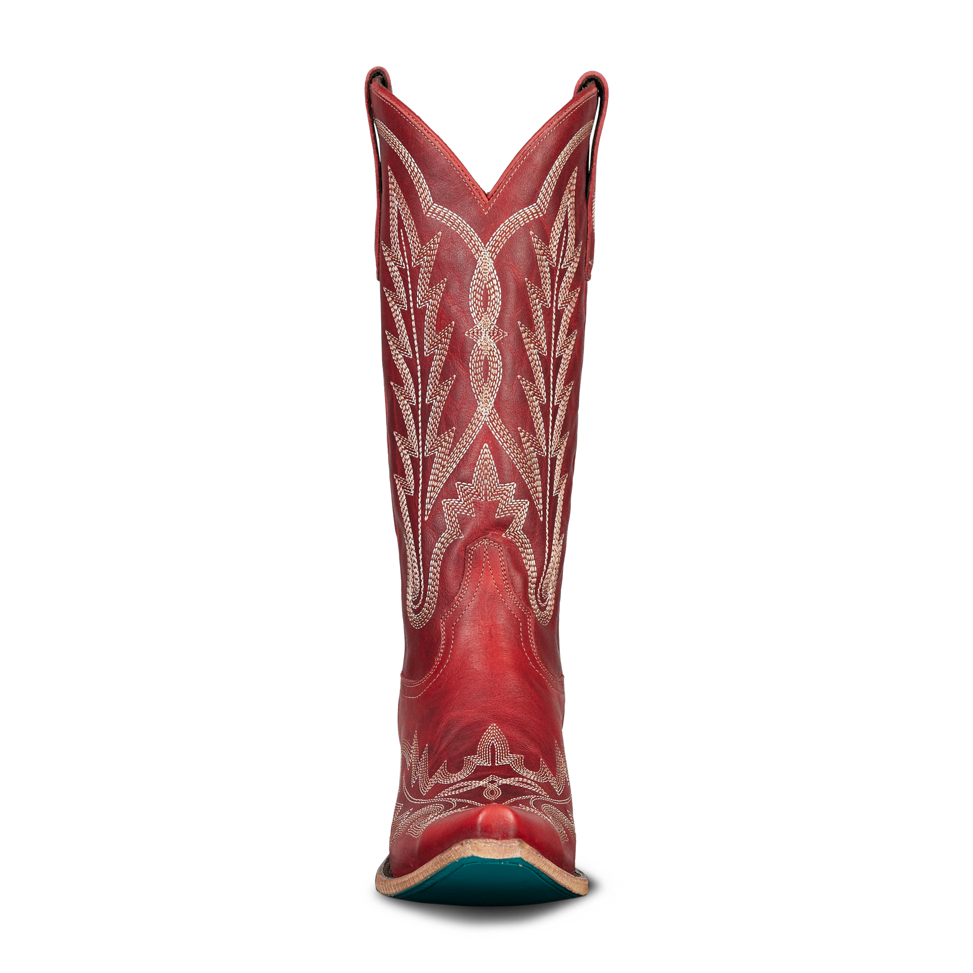 She's the perfect red cowgirl boot. Heirloom quality with a core western influence. The classic snip toe profile is embroidered to perfection with a twist on traditional flame stitch. Smoldering Ruby Red finish makes this a perfect fit for everyday to girl's night out.