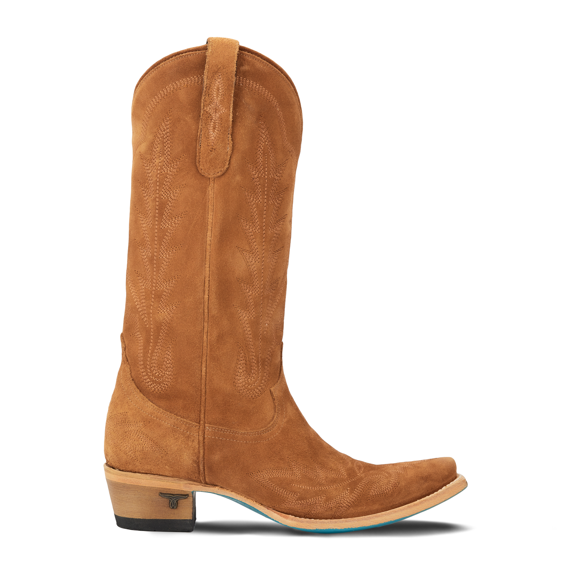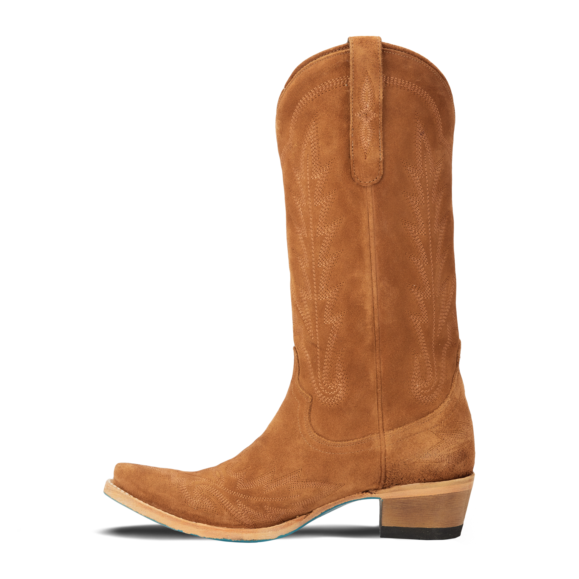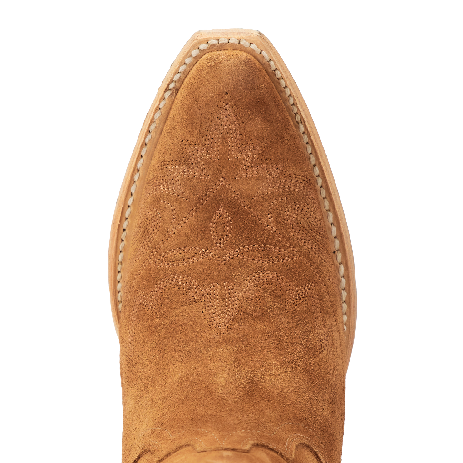 Heirloom quality boots with a core western influence. Meet Lexington in Toffee suede. The classic snip toe profile is embroidered to perfection with a twist on a traditional flame stitch.