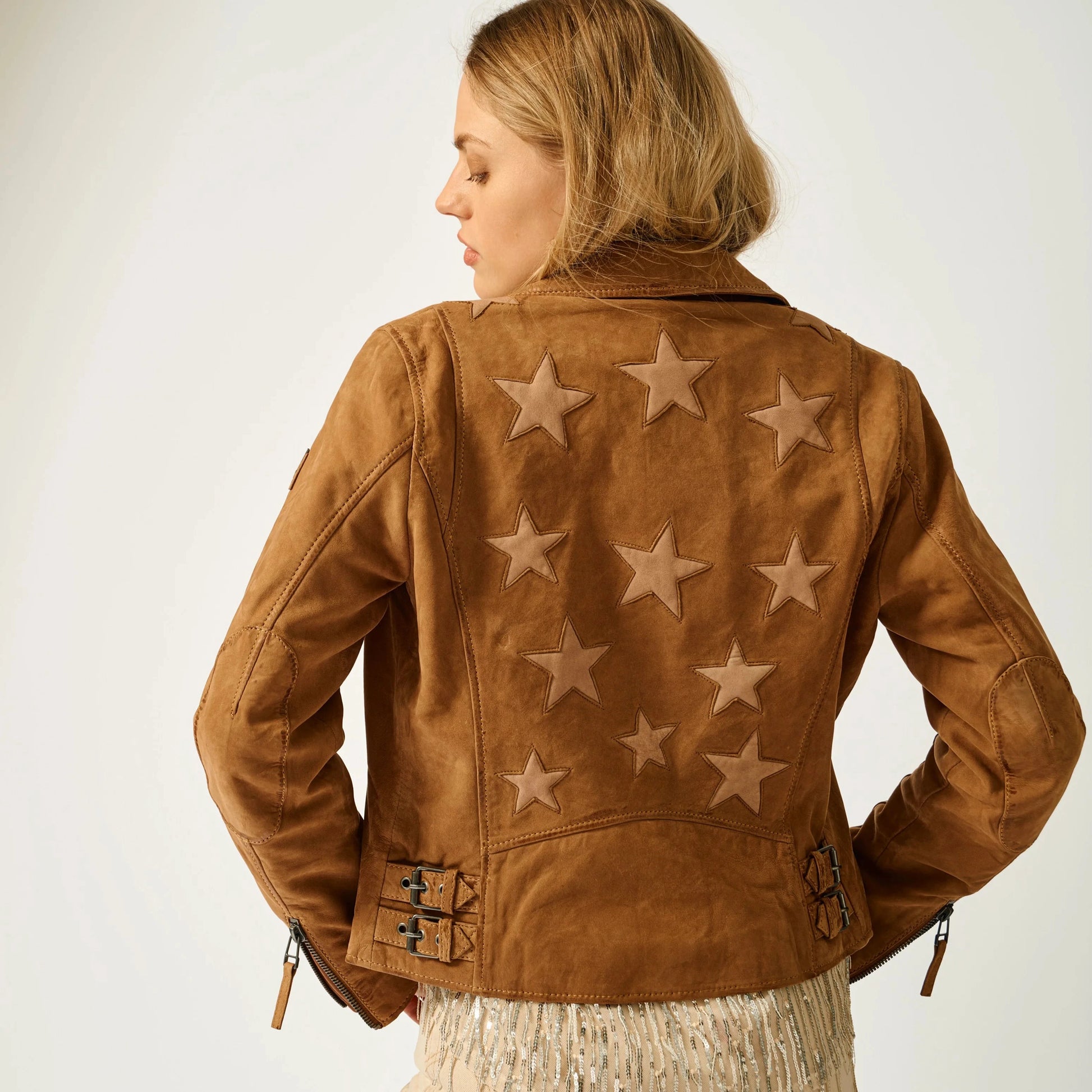 Our famous star jacket— now in Nubuck! Misty is Christy, with a Nubuck twist. Featured in numerous TV and movie cameos, this standout piece announces your arrival in style. Made from 100% vegetable-tanned, ethically produced lambskin leather, it’s designed to turn heads.