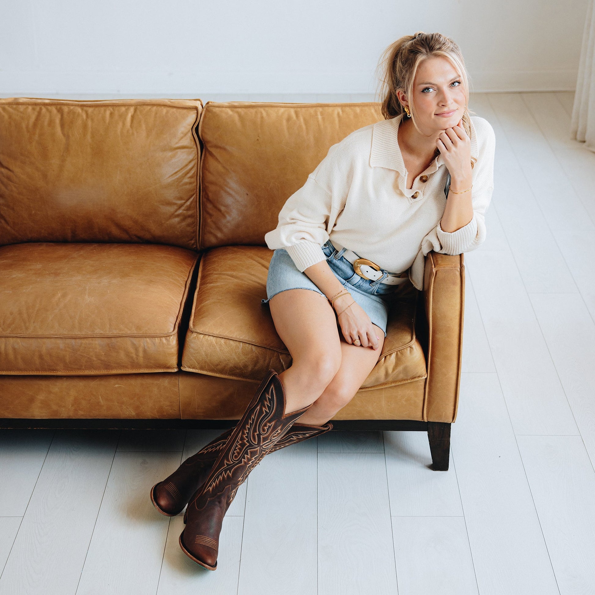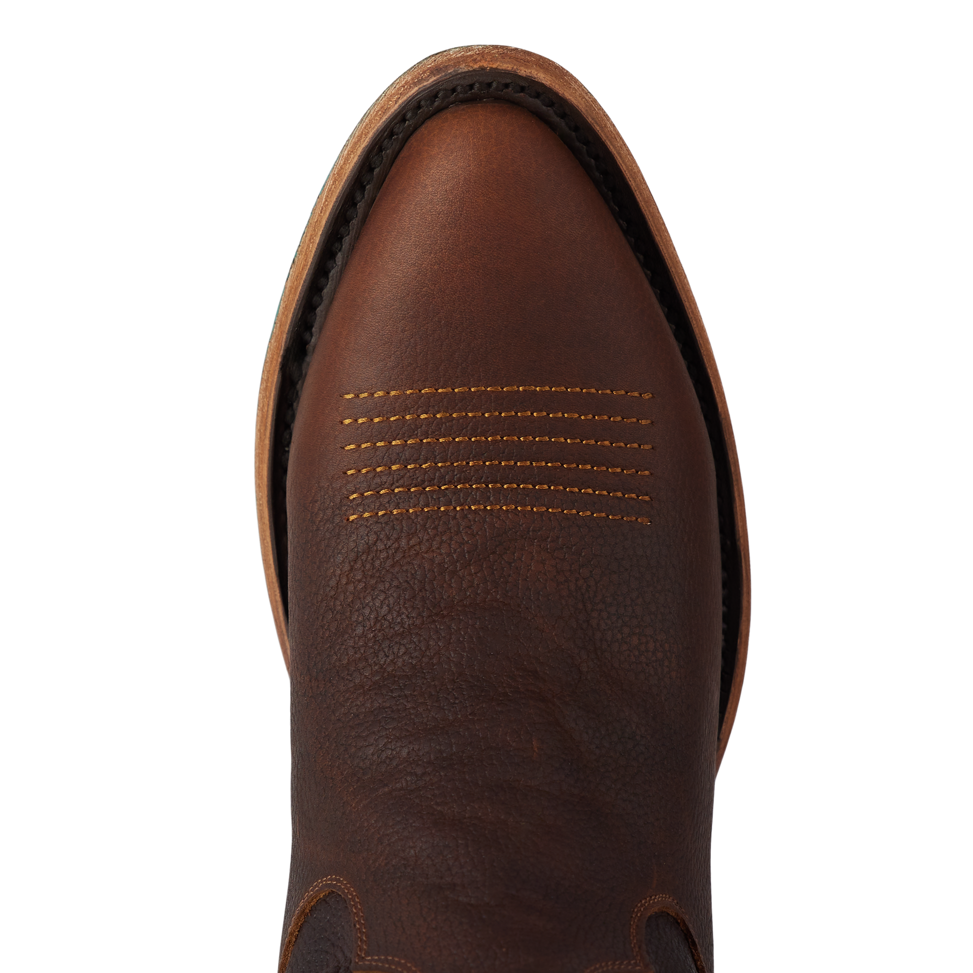 Heirloom quality with a core western influence. The classic snip toe profile is embroidered to perfection with a twist on traditional flame stitch and a functional corset back.