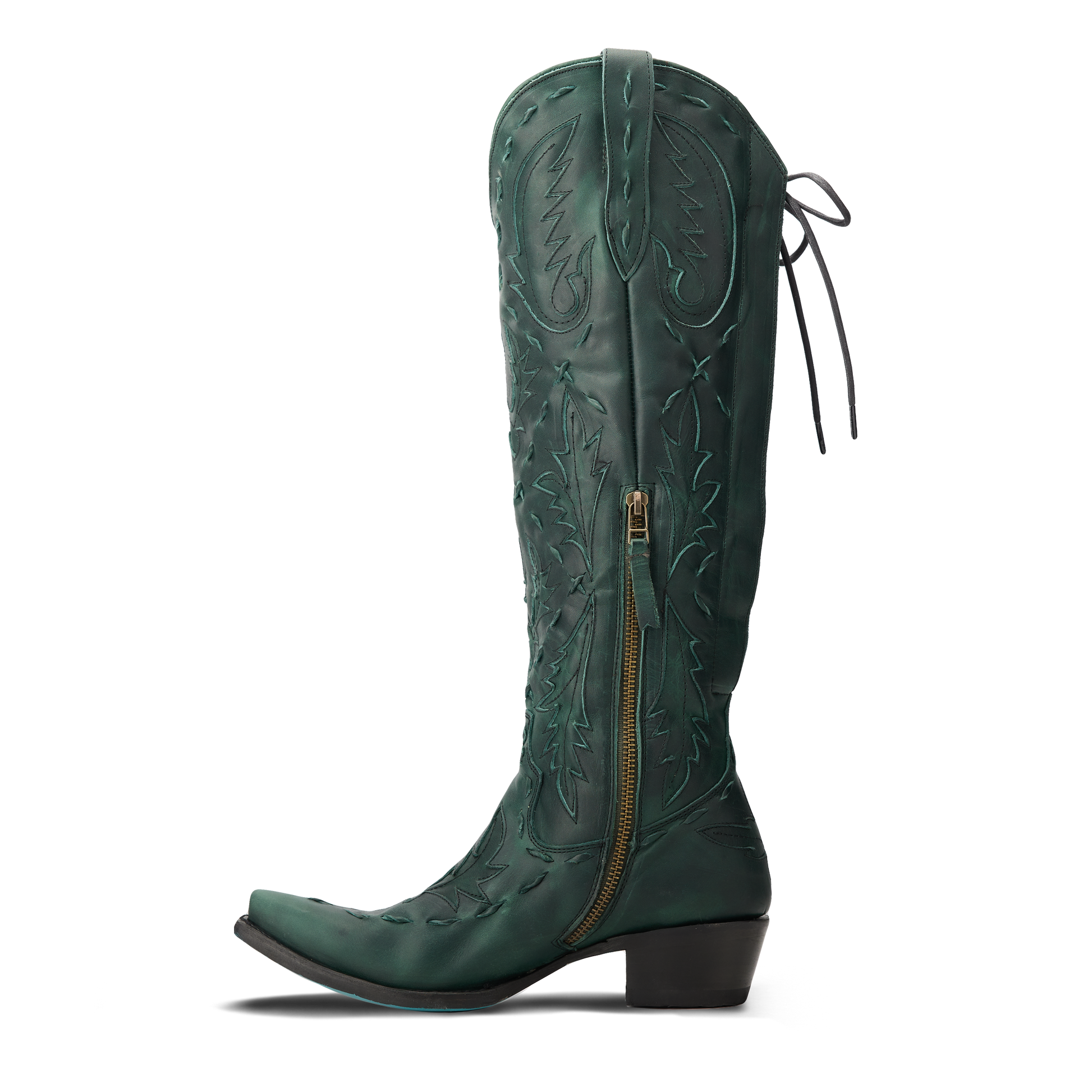 Functional corset with wide tongue to accommodate all sexy leg types. Customize the corset to your leg one time and the easy in, easy out zipper will take care of the rest.