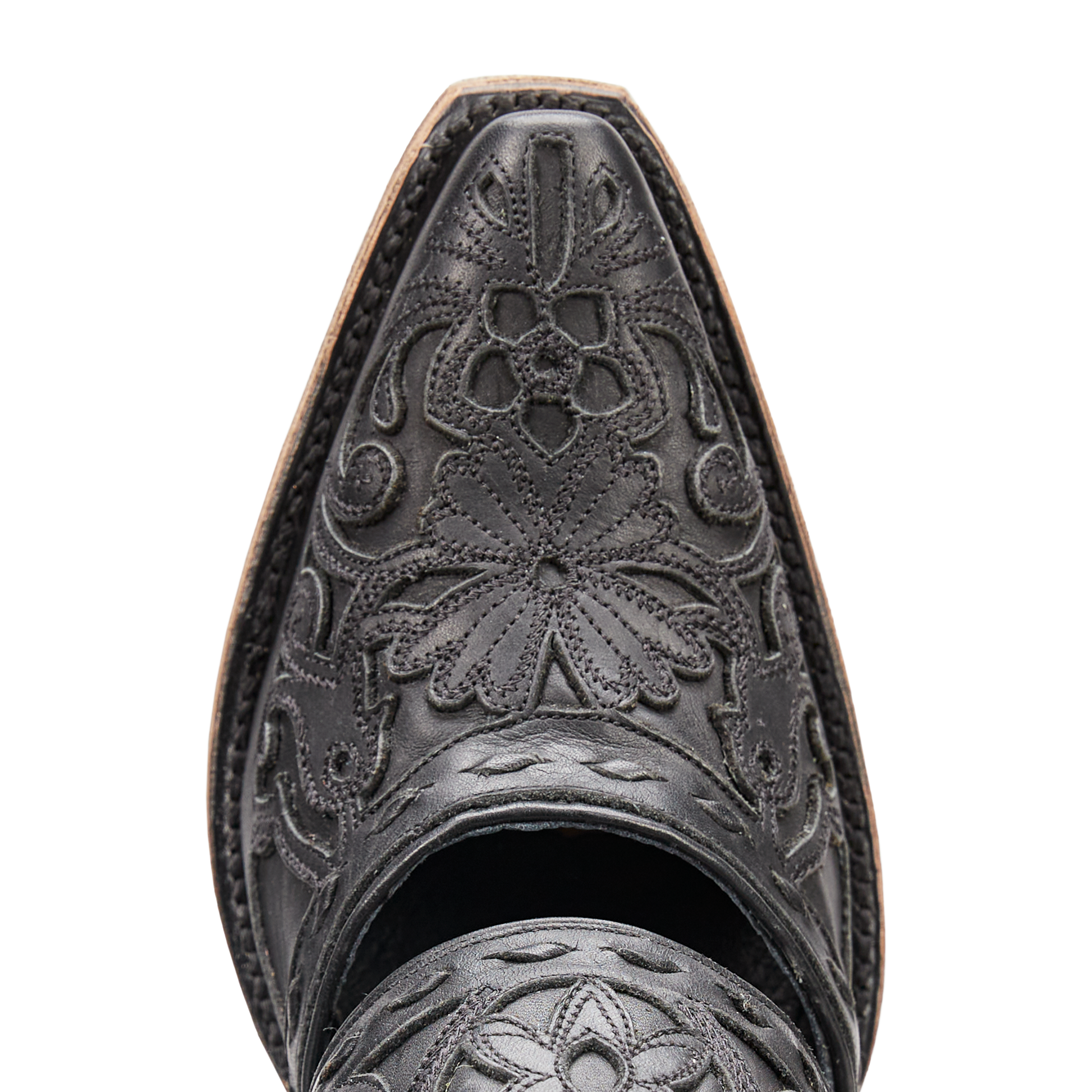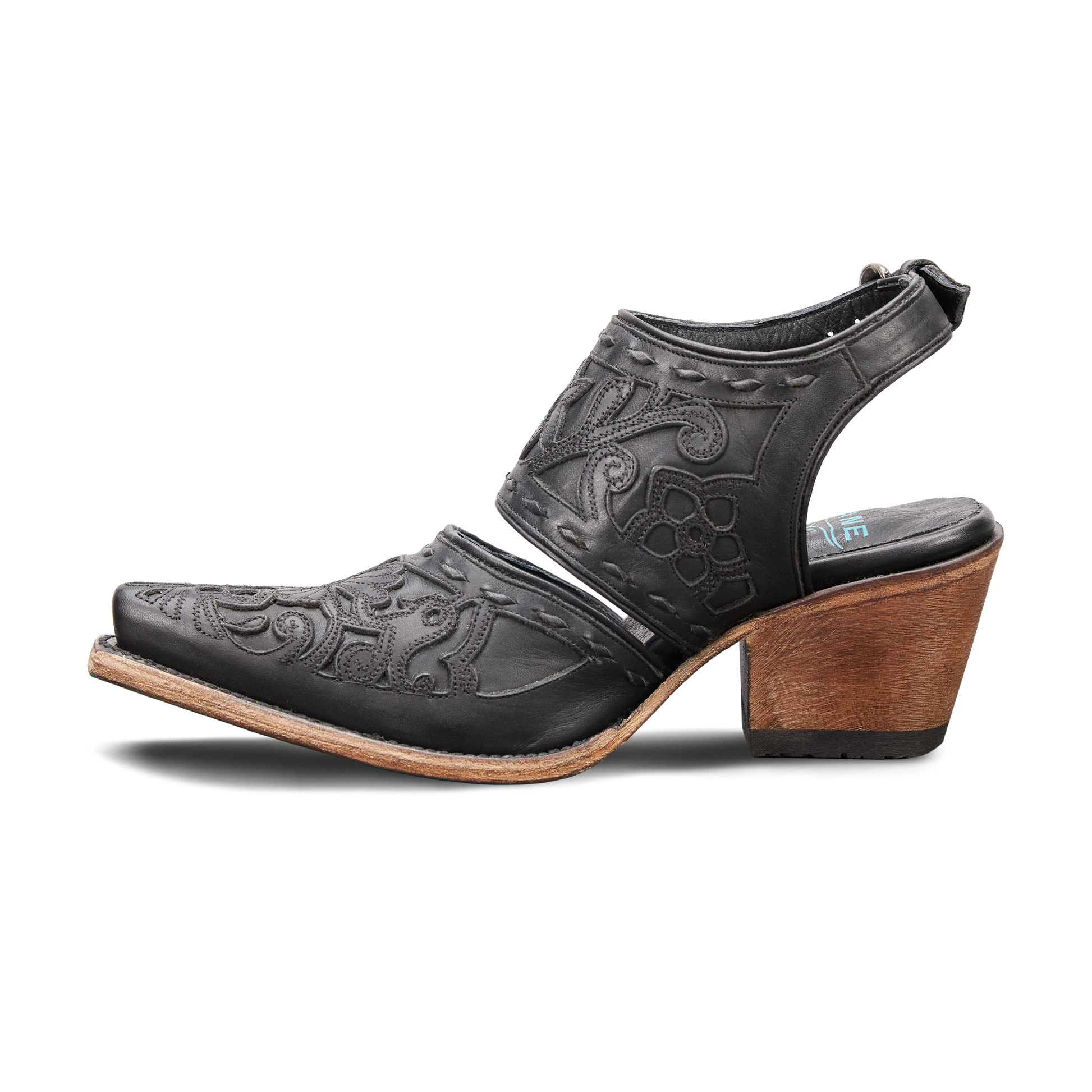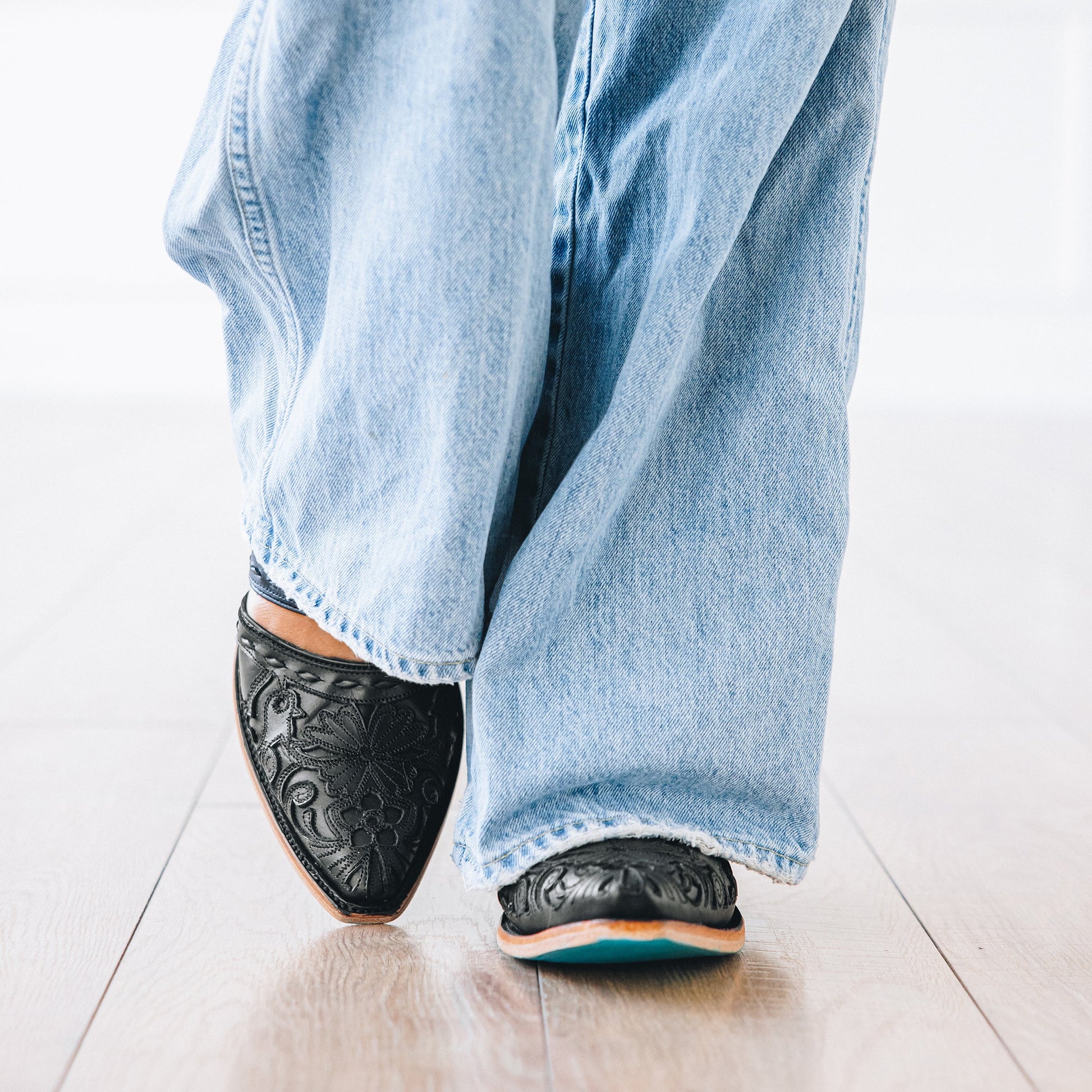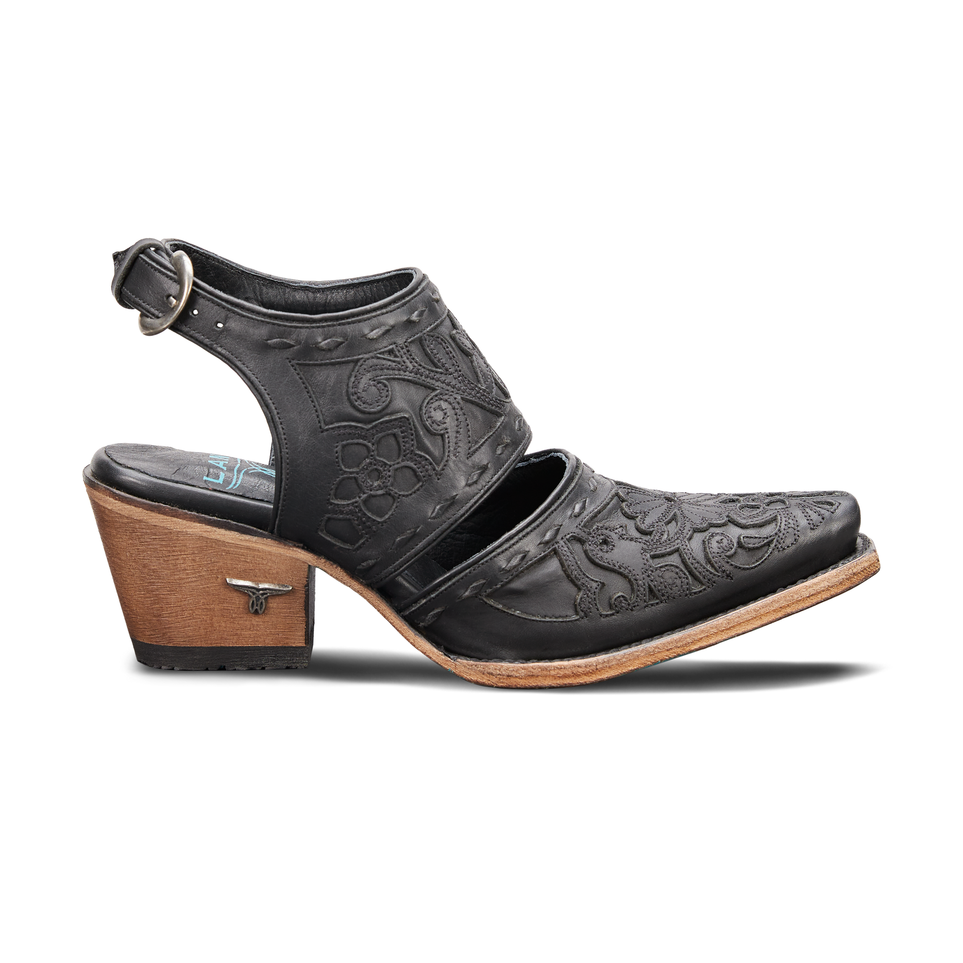 Our trendy take on an old classic, the Robin Slingback Mule in Jet Black is everything nostalgic about the iconic, retro, underlay boot while keeping it anything but expected. These intricate beauties are a class act paired with your best dresses, while also expertly highlighting your sense of casual style in beat up skinnies.