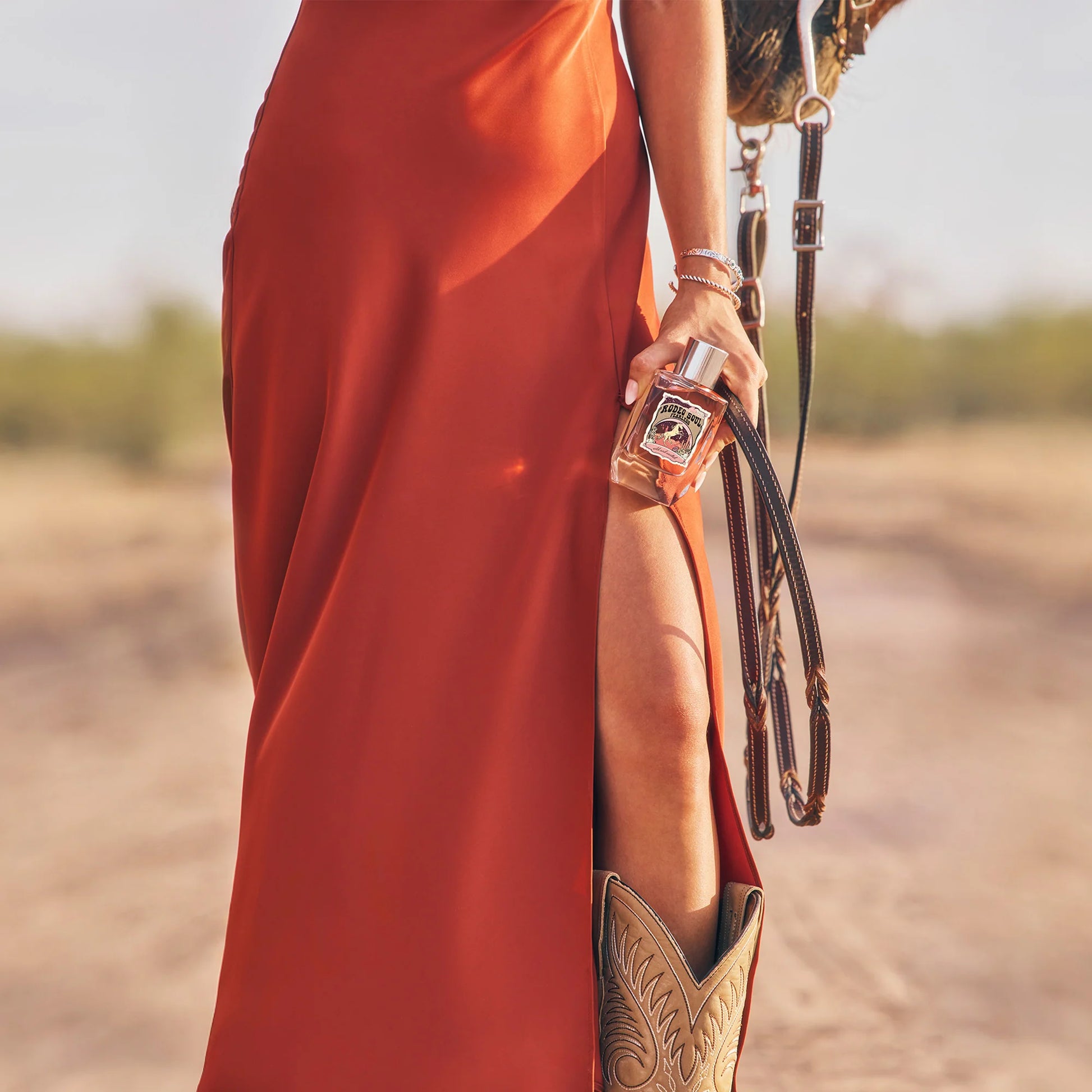 Wild and wanted and impossible to forget. Rodeo Soul Fearless is a bold twist on the original, made for the woman who’s wild at heart and wanted everywhere she goes. It opens with a delicious swirl of ruby cactus chocolate so rich and undeniably decadent. Creamy notes of coconut milk and desert jasmine bloom at the heart, ending with a warm base of pink moss and sandalwood. This decadent perfume is equal parts bold and sweet, just like her.