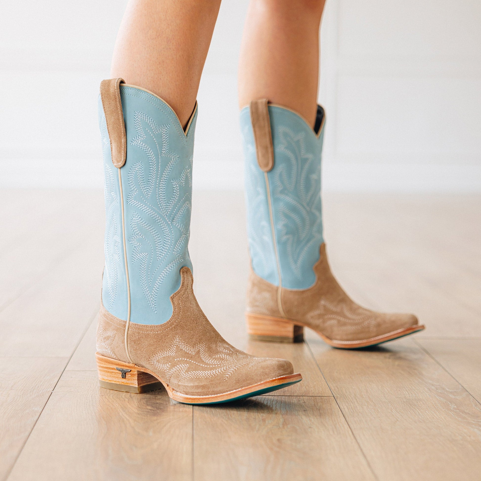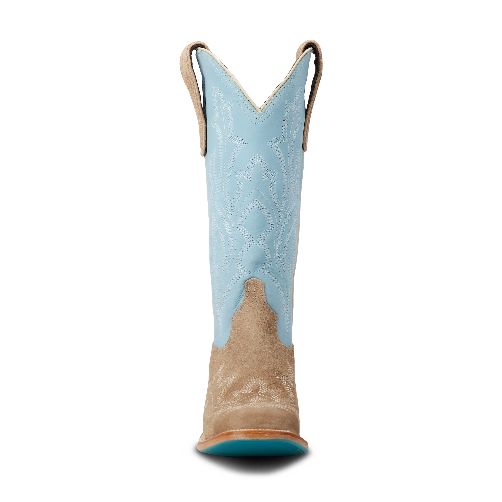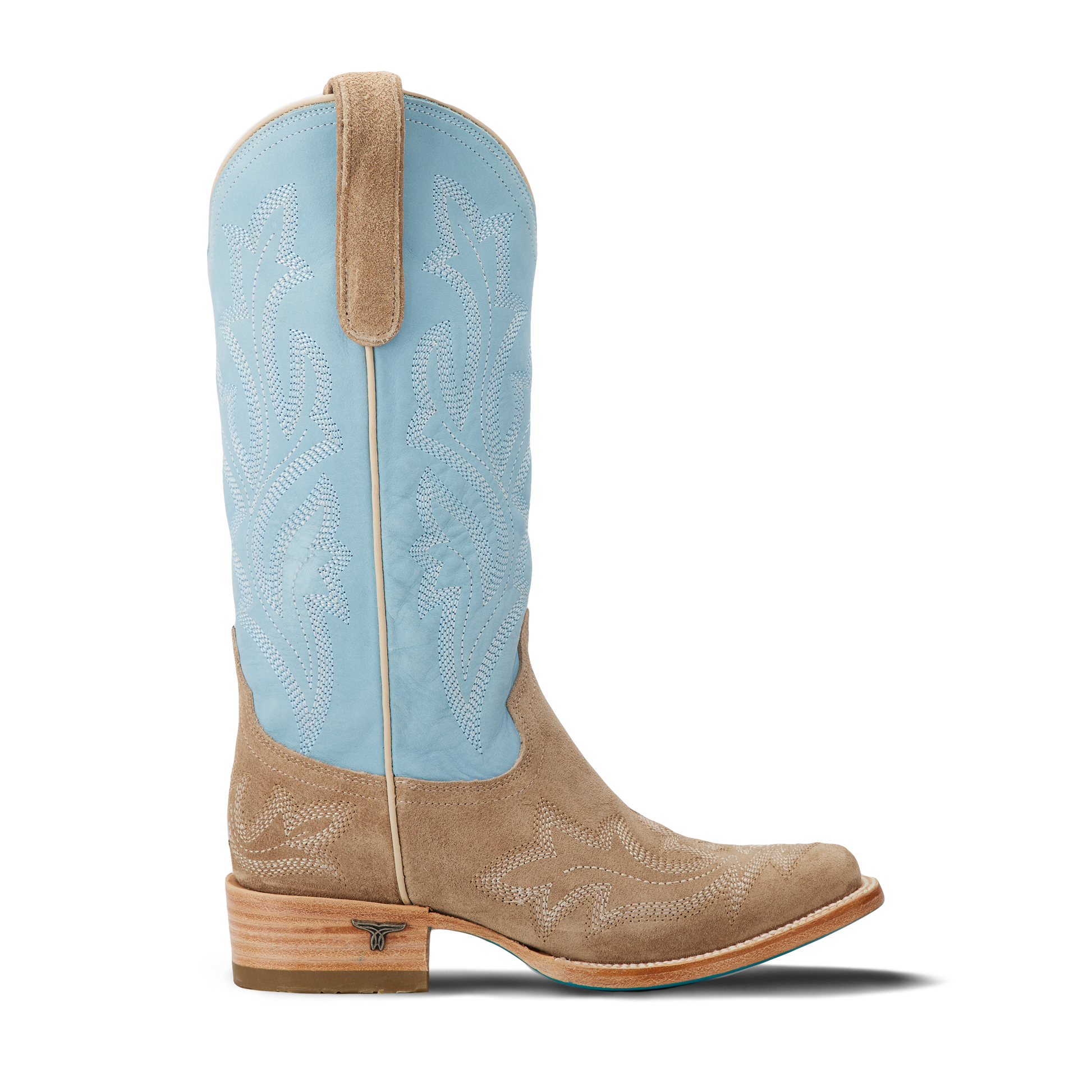 Saratoga Square Boot - Latte Suede and Powder Blue