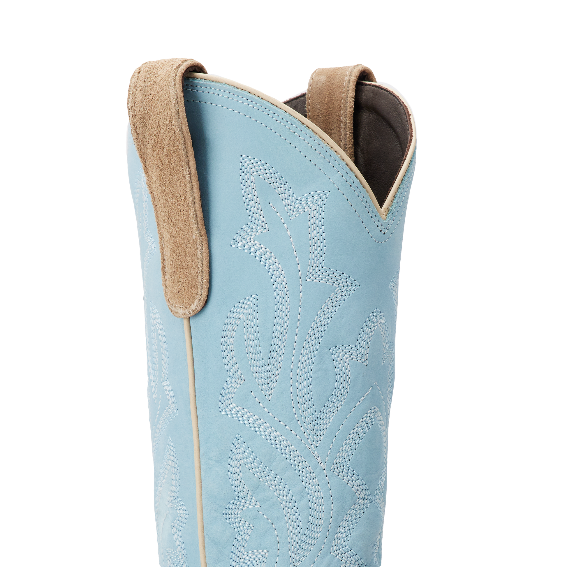 A cowgirl must have boot featuring a Powder Blue upper and Latte Suede foot with intricately stitched details. This Signature Series is a must for your on-trend western closet.